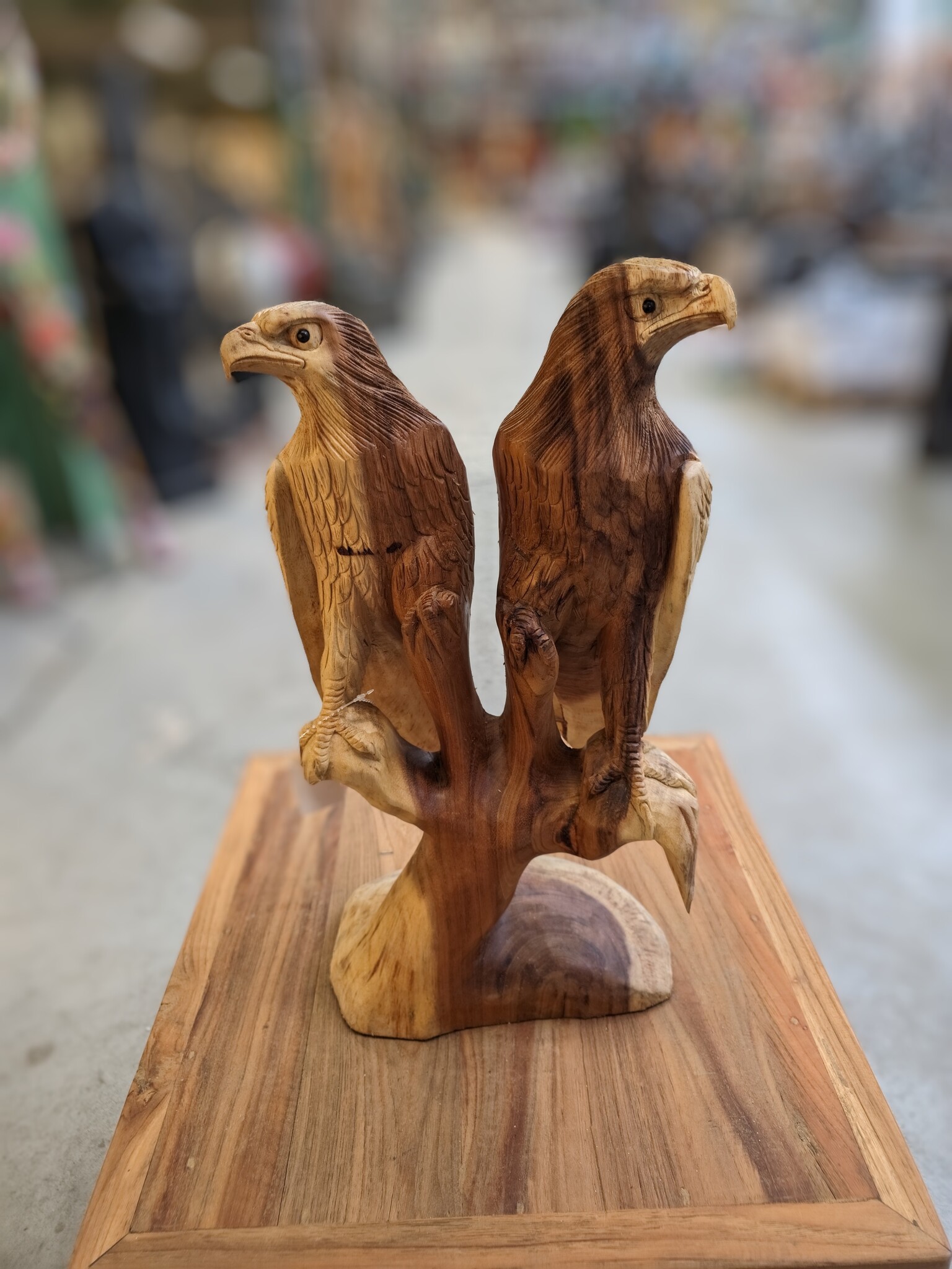 Houten beeld 2 adelaars op stam 55cm