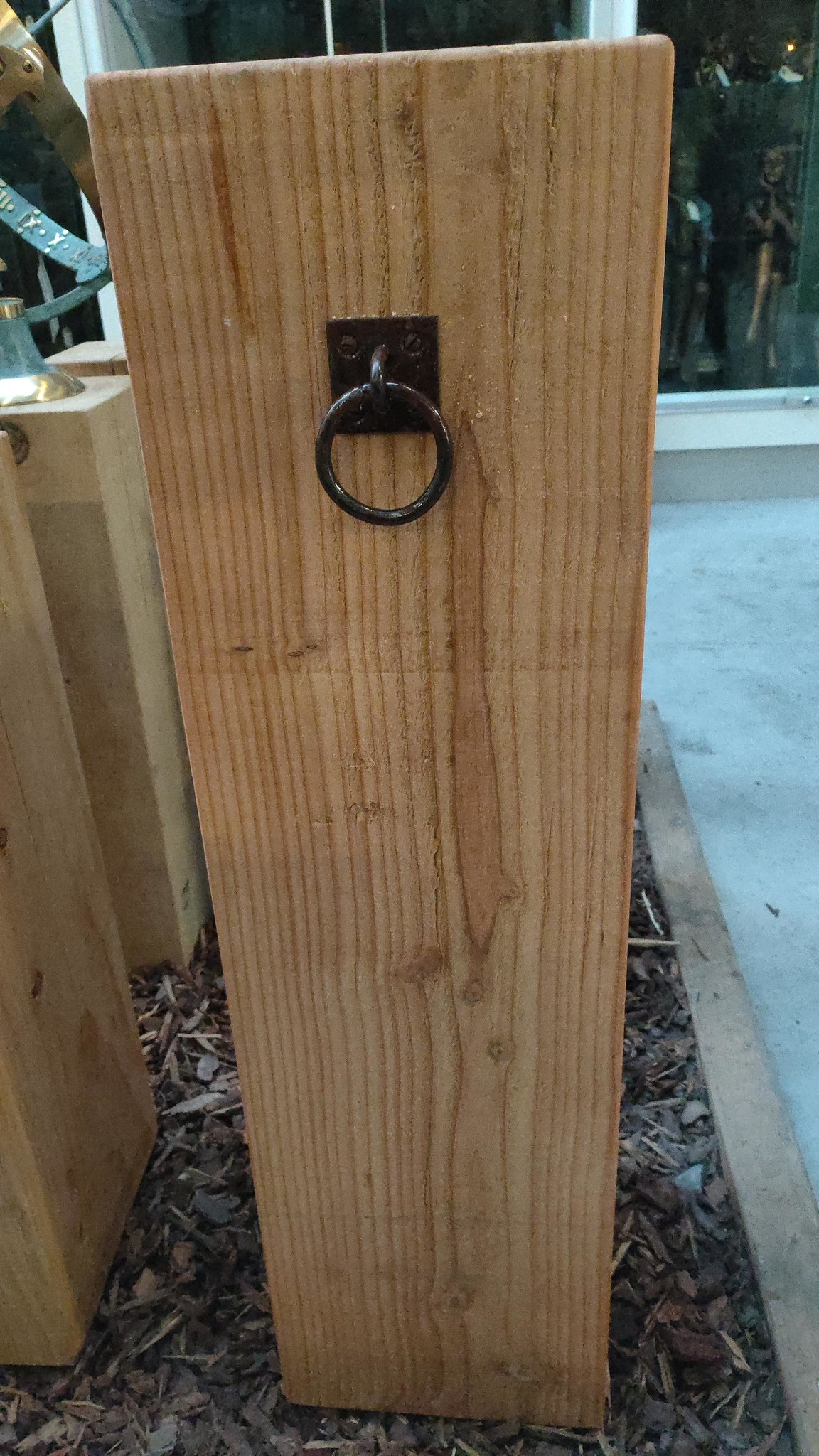 In deze zuilen van dit massief douglas hout materiaal kunnen scheuren zitten of ontstaan. Vooral binnen kunnen die scheuren groot worden, of er kan op plaatsen hars ontstaan, noesten zitten of andere oneffenheden. Dit is juist een karaktervolle eigenschap van dit materiaal. Omdat hierop niet gereclameerd kan worden, adviseren wij u om in onze zaak een zuil uit te zoeken, omdat de uitstraling en tekening van de nerven steeds anders is. U kunt deze sokkels simpel een kleurtje geven als u dat wenst, buiten zal deze houtsoort onbehandeld grijs verkleuren wat ook zijn eigen charme heeft