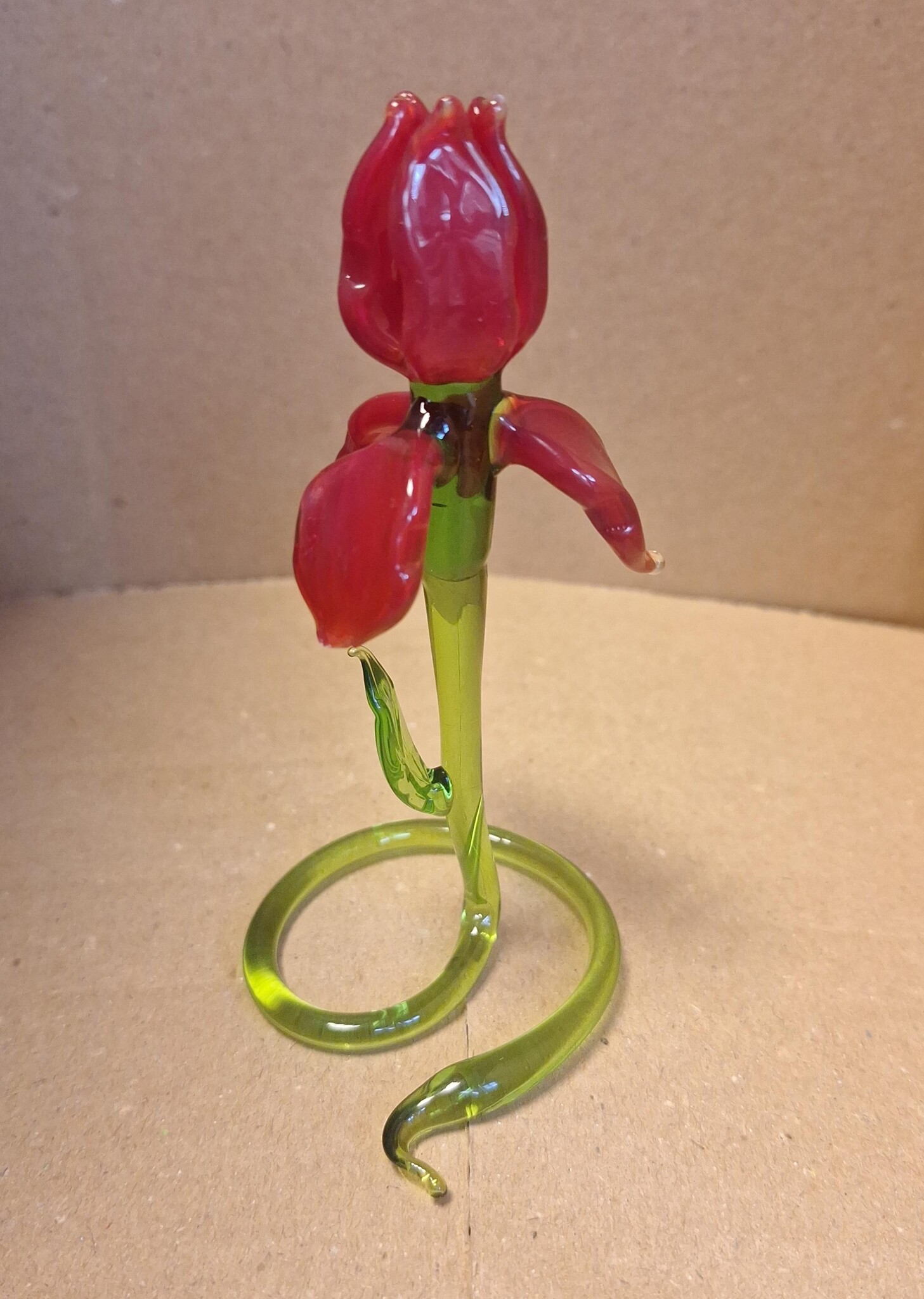 Bent u een liefhebber van glazen voorwerpen?, dan zult U deze rood gekleurde iris ook wel mooi vinden.