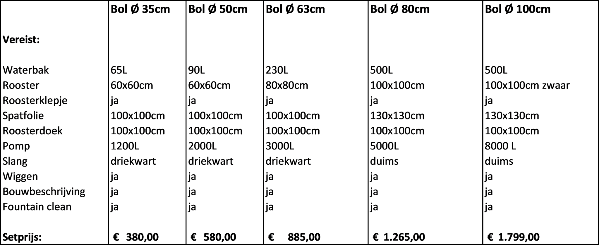 Een offerte op maat met afwijkende benodigdheden is ook mogelijk, neem hiervoor contact met ons op. Neem ook contact met ons op voor het combineren van meerdere varianten.