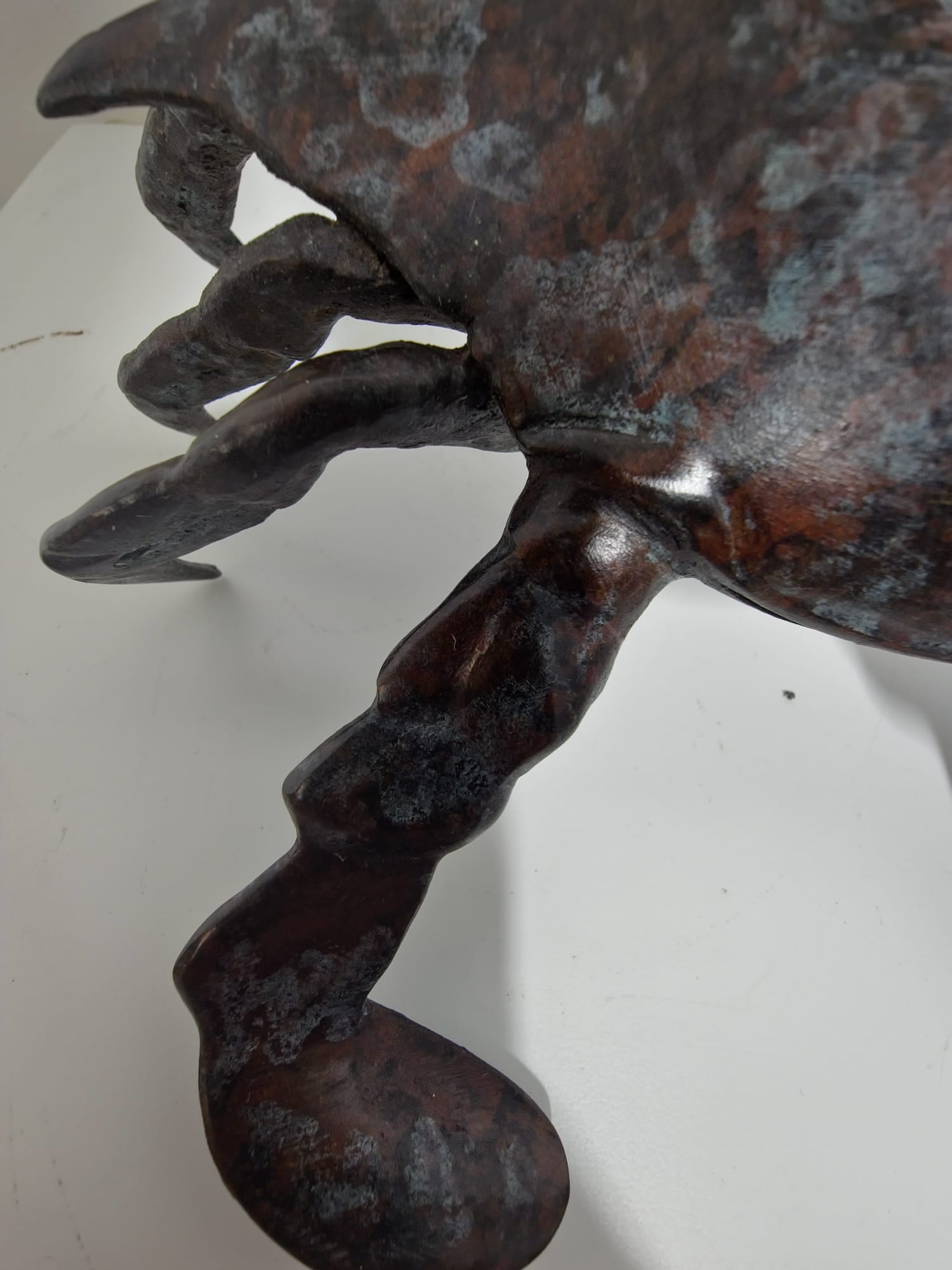 Mooi modern modern vorm gegeven beeld van een krab in levensgroot formaat. Gemaakt van 100% hoogwaardig brons met een minimale kopergehalte van 75% waardoor een zeer lange levensduur gegarandeerd is en geen lelijke vlekken ontstaan.  Een prachtig en duurzaam decoratie object voor huis , bedrijf of tuin, maar ook voor een prachtig geschenk.