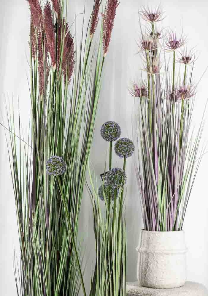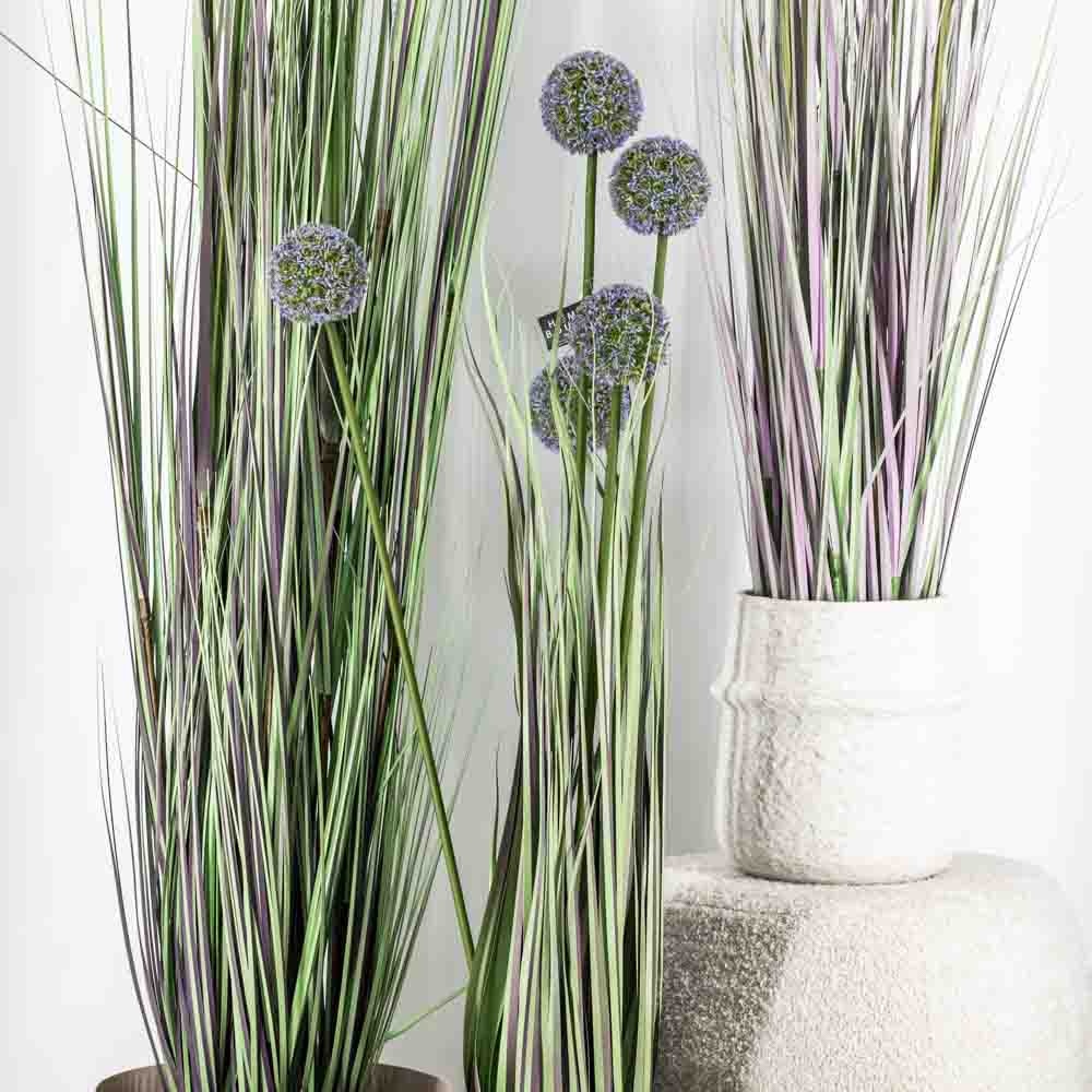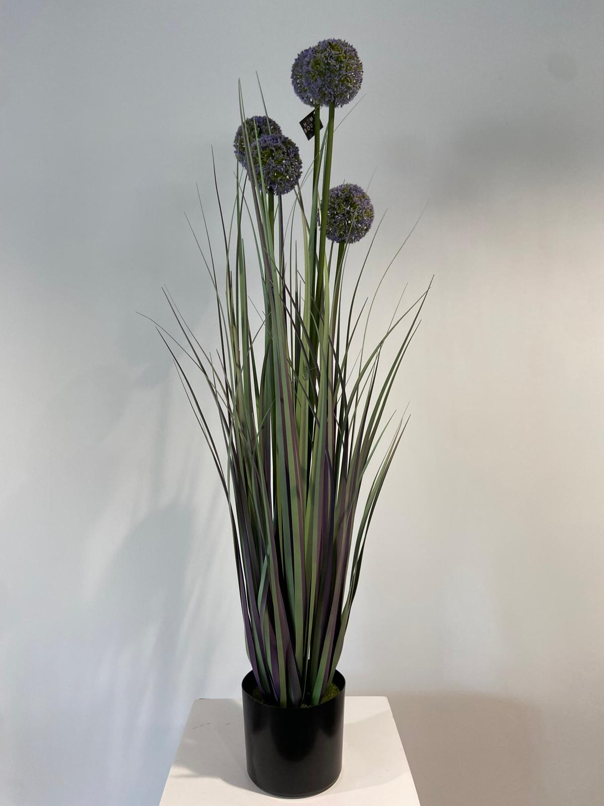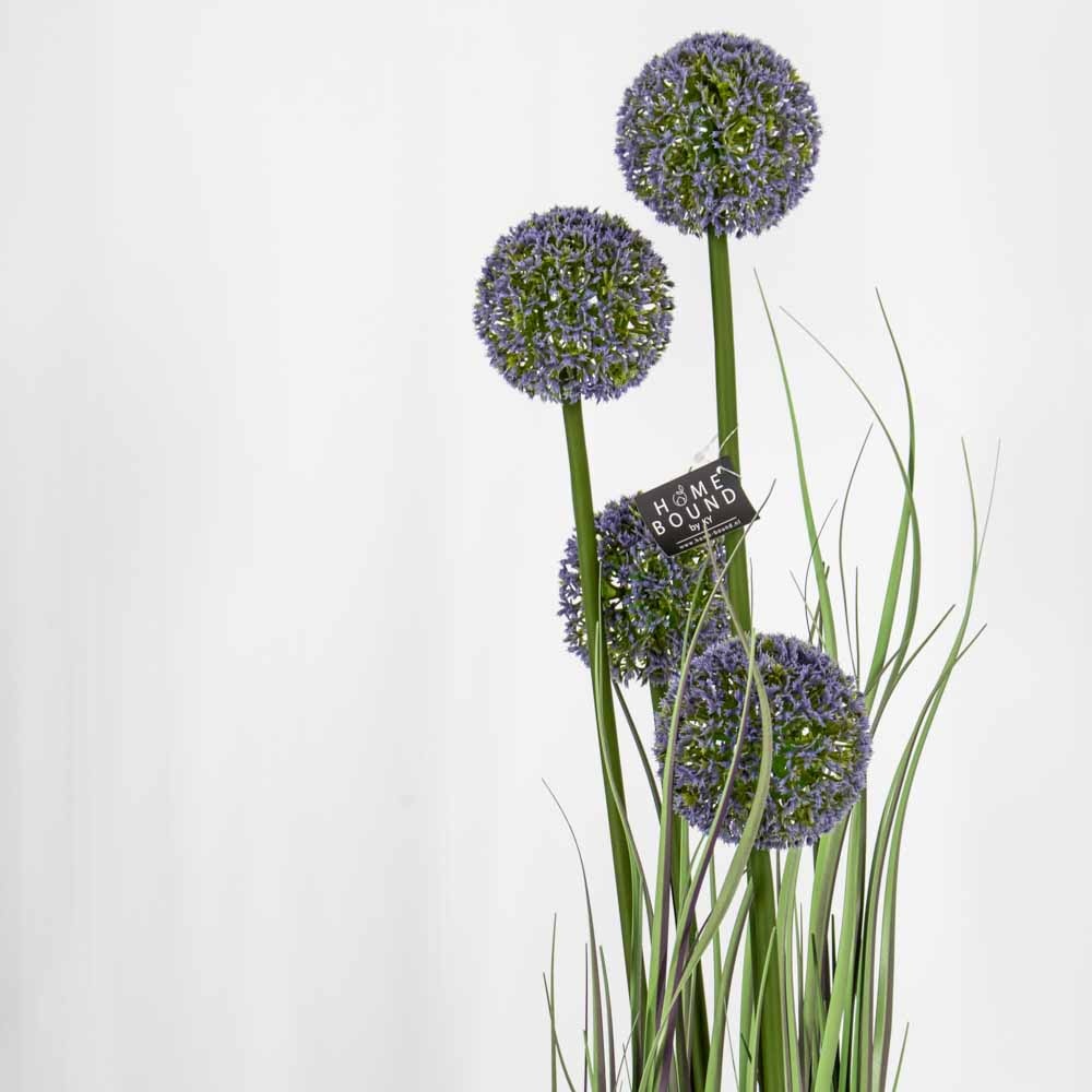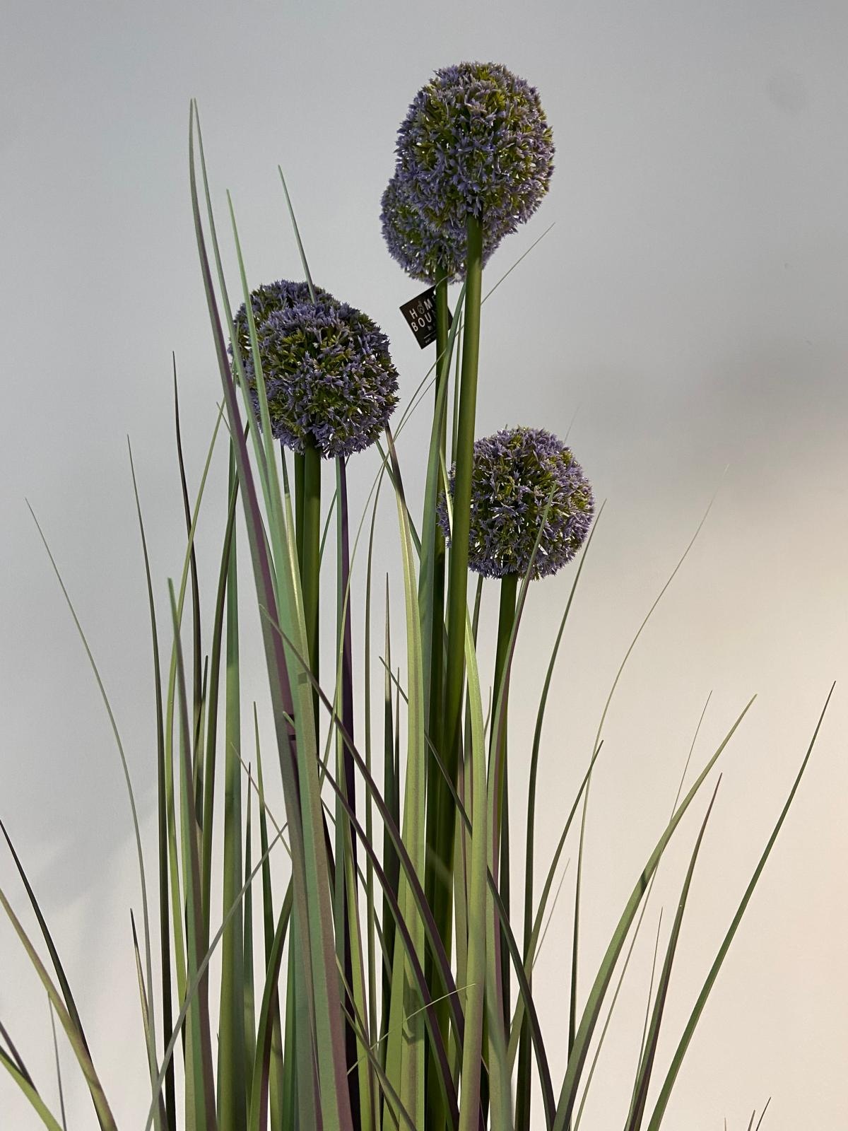 Kunstplant Gras Allium 5 blauwe bollen 110cm