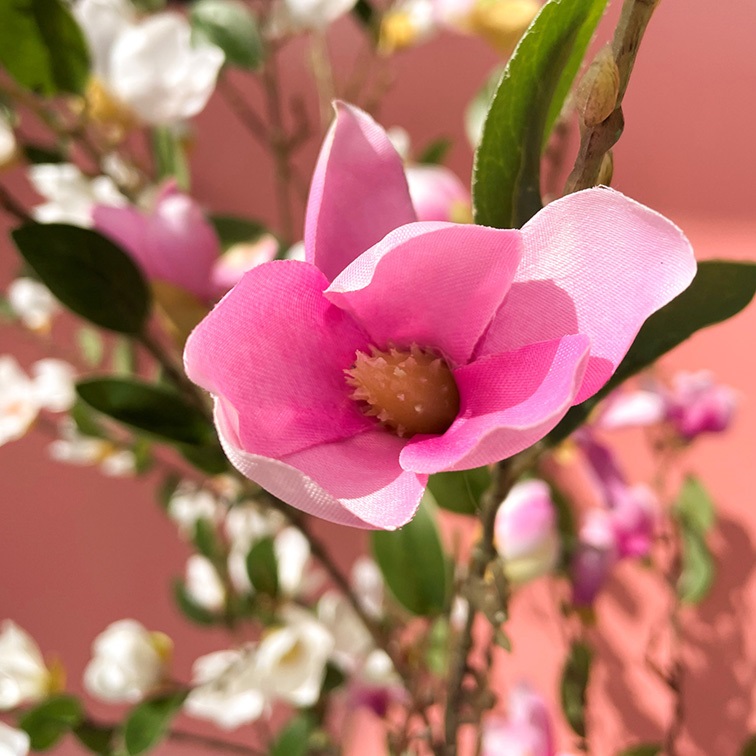 Dit natuurgetrouwe model magnolia plant met bloeiende bloemen is gemaakt van de fijnste gerecyclede kunststof soorten, en staat goed op zichzelf door de pot waarin de plant staat. Deze magnolia plant vult lege plaatsen heel snel door de grote hoogte en brede uitwaaiering. Gecombineerd met andere zijdeplanten, samen in 1 grote pot kunt u een mooi planten arrangement maken, waar u geen omkijken meer naar heeft.