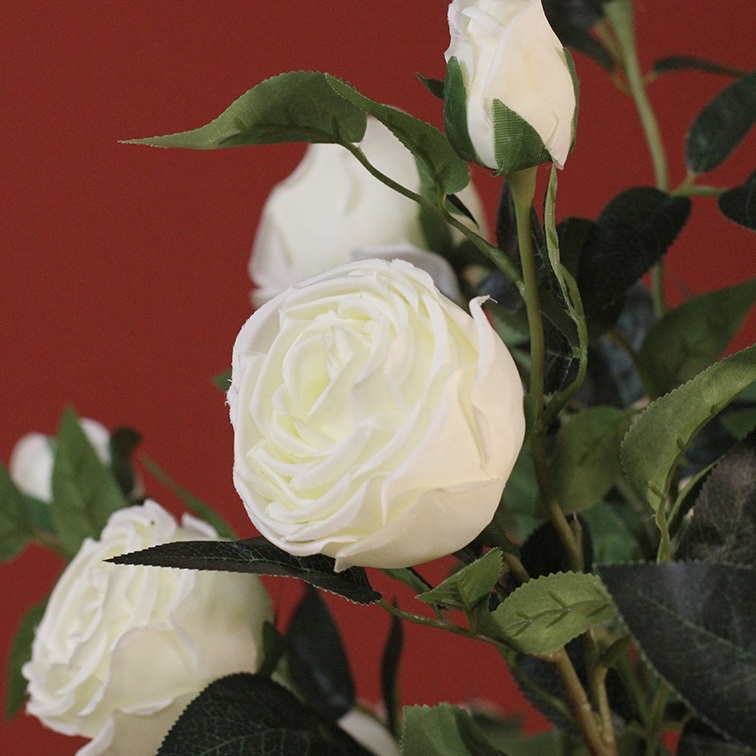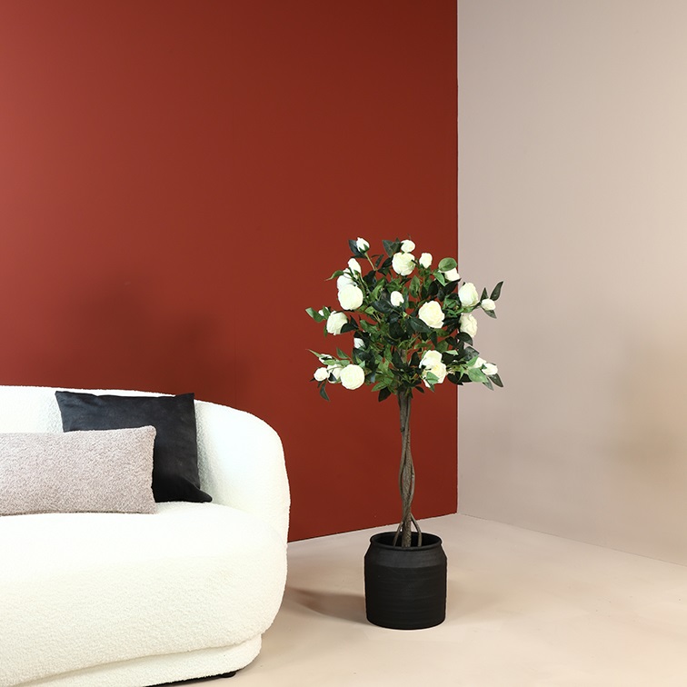 Dit natuurgetrouwe model roos met kleine bladeren en bloeiende rozen is gemaakt van de fijnste gerecyclede kunststof soorten, en staat goed op zichzelf door de pot waarin de plant staat. Deze grote roos vult lege plaatsen heel snel door de hoogte van 120cm en vele kleine bladeren. Gecombineerd met andere zijdeplanten, samen in 1 grote pot kunt u een mooi planten arrangement maken, waar u geen omkijken meer naar heeft.