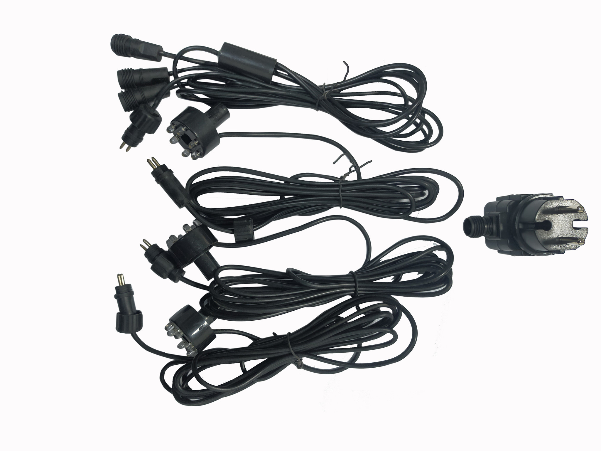 Ledverlichting 3-delig met 6 ledjes per unit,31mm diameter ter vervanging van oude ledjes of gewoon te gebruiken als u iets met water wilt verlichten. Slangaansluiting 1/2 duims. Set bestaat uit 3x ledunits met elk 1,5 mtr snoer, en de snoer lengte vanaf de trafo is 500cm met aan het eind een 3-weg aansluiting.