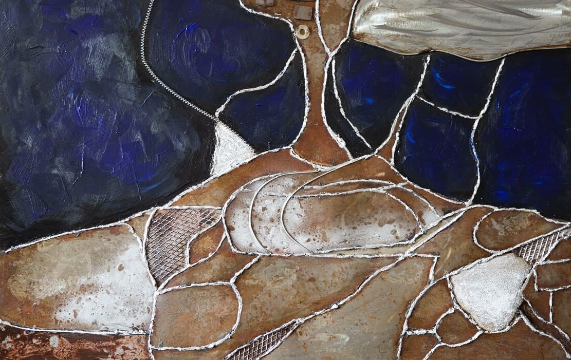 Metalen schilderij met een abstracte afbeelding, subliem gemaakt van losse delen metaal, die allemaal met de hand aan elkaar gelast zijn, voor een optimaal 3d effect te verkrijgen. Een prachtig stuk muurdecoratie voor in huis, buiten onder een afdak  of in uw bedrijf. Kleuren en algemene uitstraling kan afwijken van de foto aangezien dit hele object door mensen handen gemaakt is.