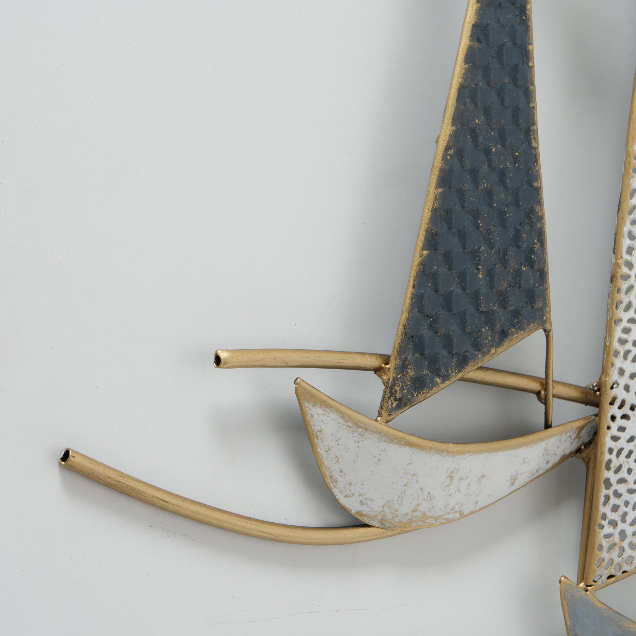 Helemaal met de hand vervaardigde metalen muurdecoratie, met een groep boten. Een prachtige aanwinst voor uw huis of buiten onder een veranda. Aangezien het met de hand geschilderd is, is elk exemplaar uniek, en kan de vorm of kleur enigzins afwijken van de foto.