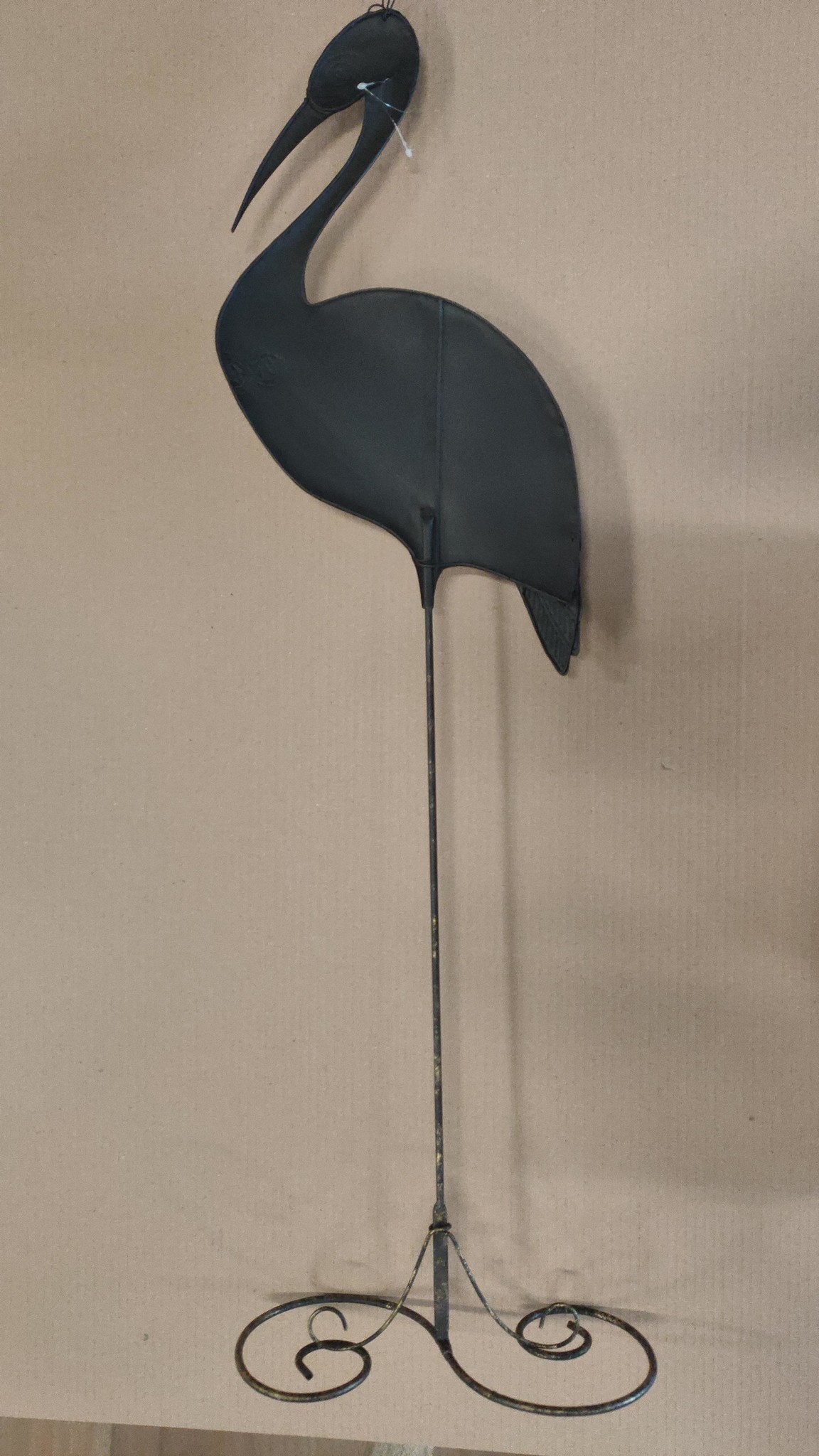 Metalen beeld Ooievaar op standaard