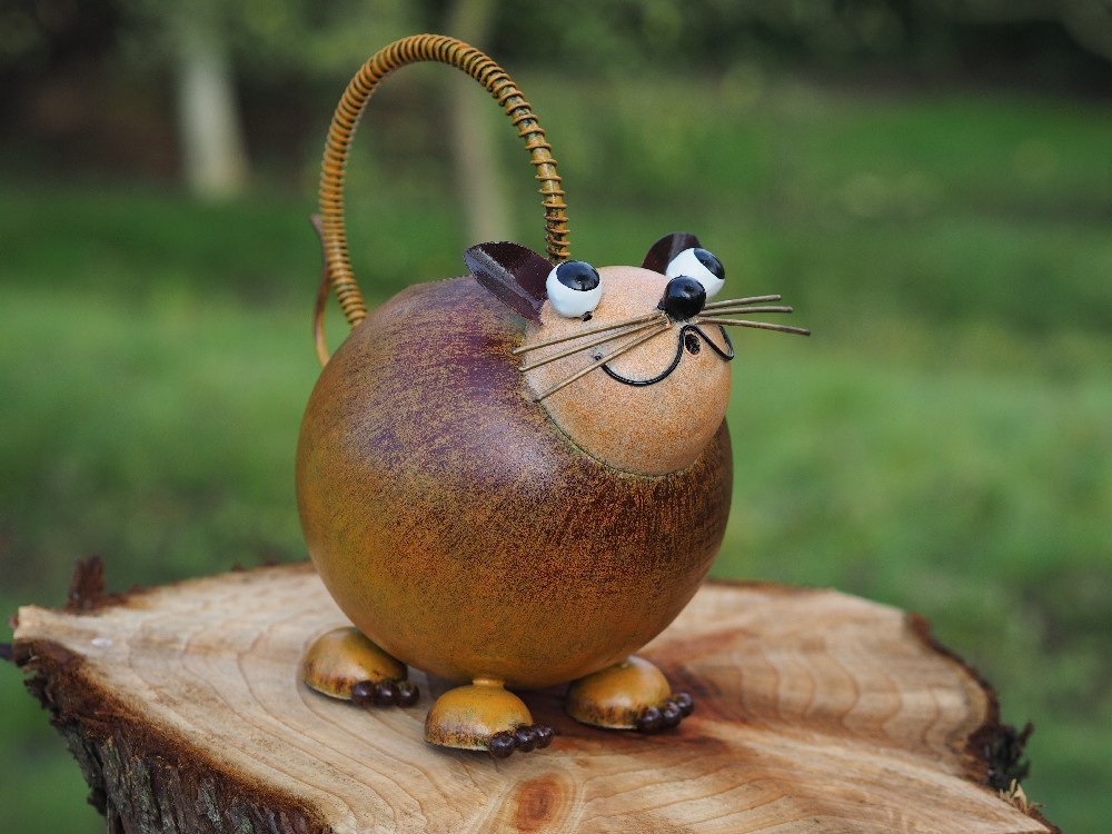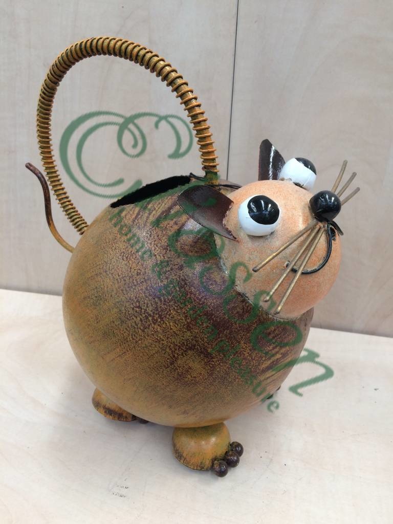 Schitterend, afgewerkt metalen figuur van een poes met een gieter functie. Een sieraad in huis of tuin en mooi om kado te doen. Helemaal met de hand gemaakt en geverfd. Dit model kan tevens dienen als gieter.