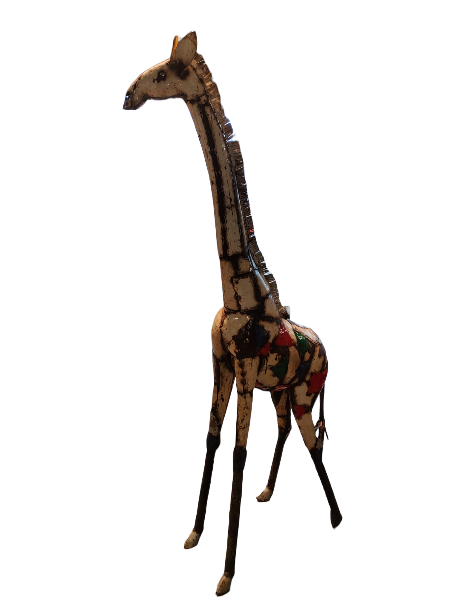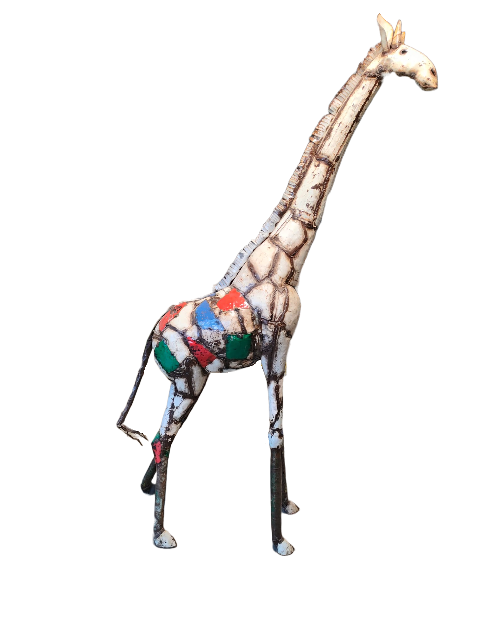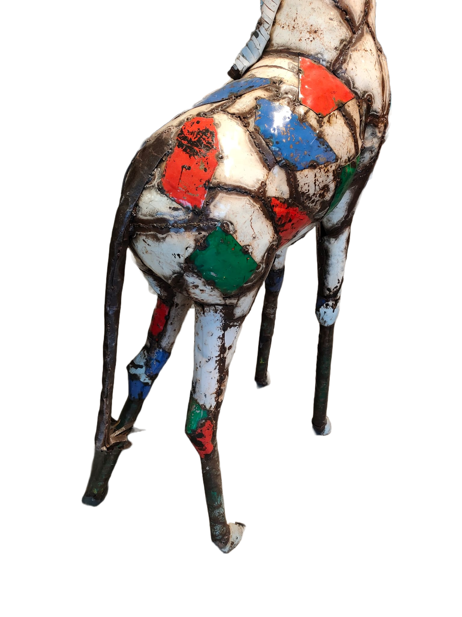 Schitterend afgewerkt metalen figuur van een grote giraffe.