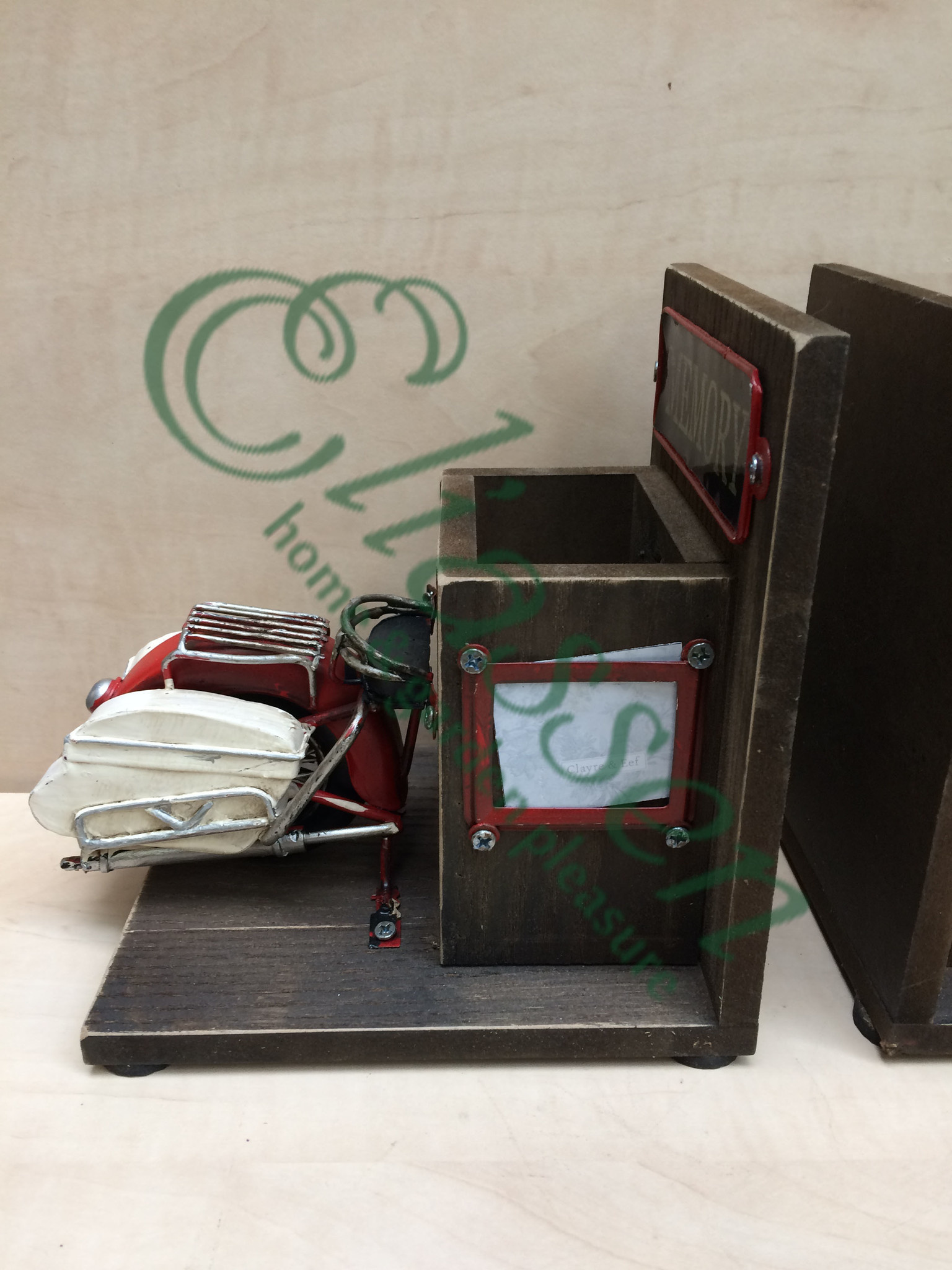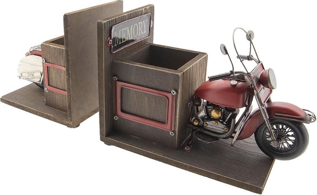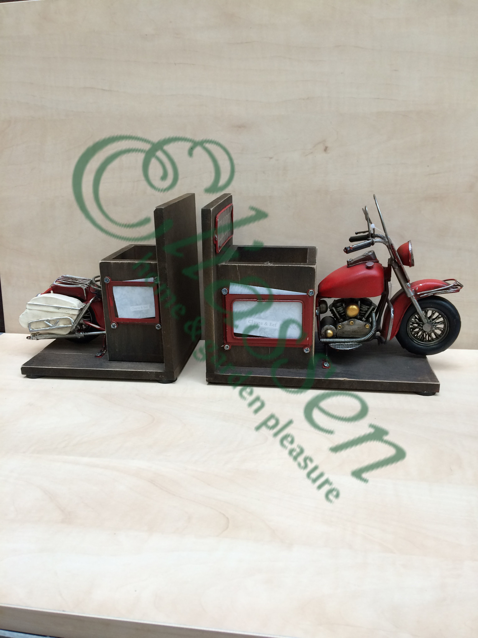 Prachtig met de hand gemaakt model van een paar boekensteunen in motor-model.