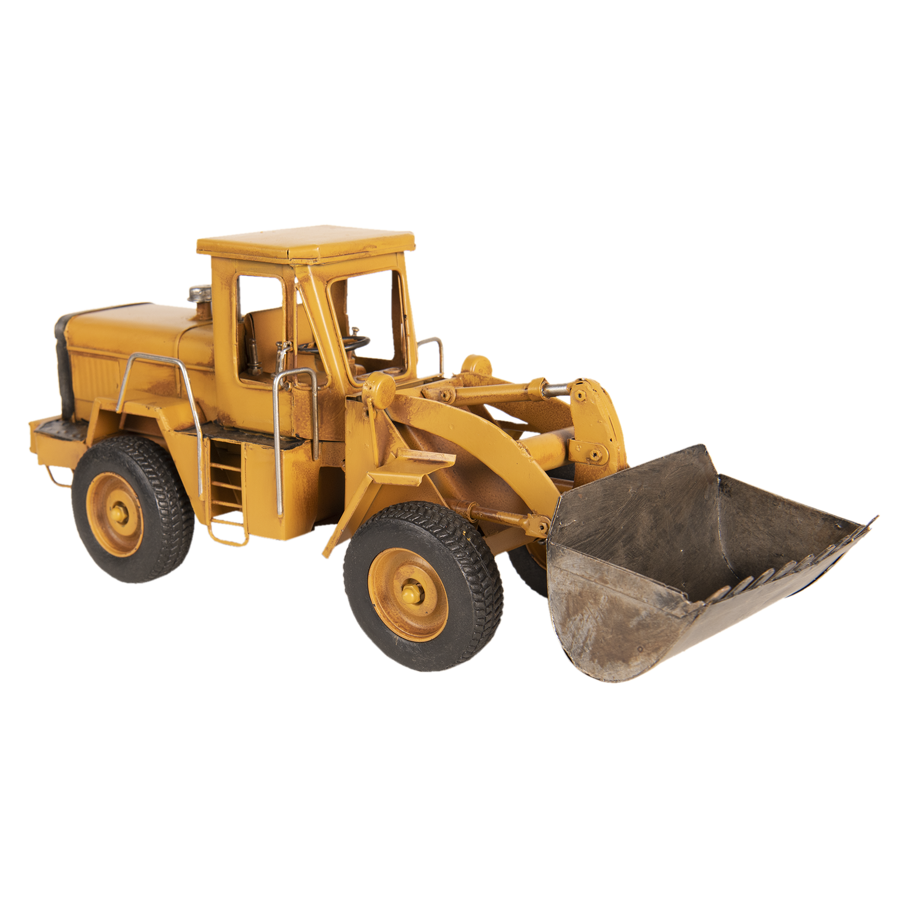 Prachtig met de hand gemaakt model van een gele wiellader.