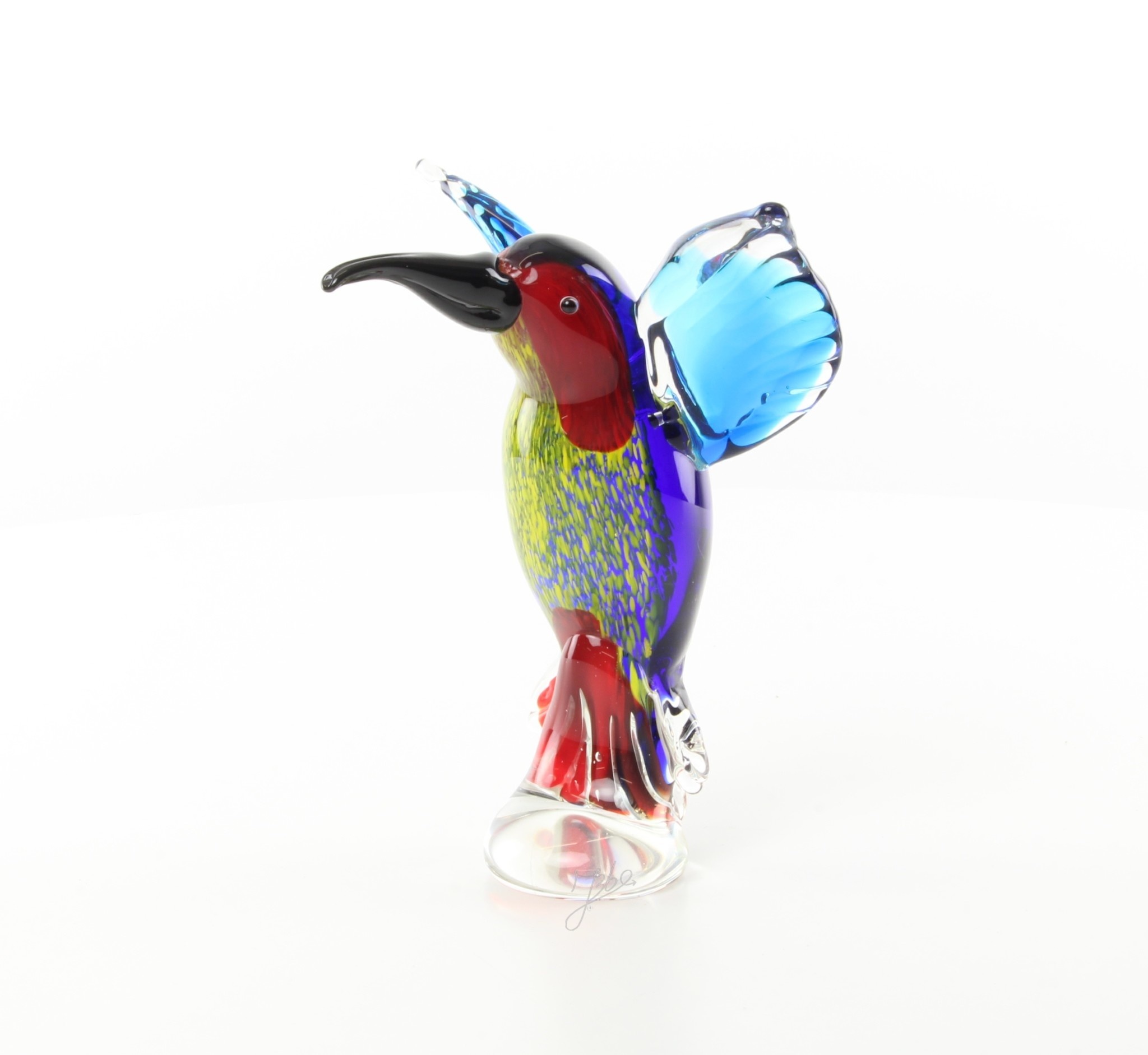 Dit unieke glazen sierobject in de vorm van een ijsvogel is een pracht stuk decoratie voor uw huis of om cadeau te doen. Deze ijsvogel van glas is op dezelfde wijze gemaakt als het eeuwenoude en beroemde Murano glas uit Italië. Op de authentieke manier met de mond geblazen uit verschillende kleuren glas die in elkaar versmolten zijn.