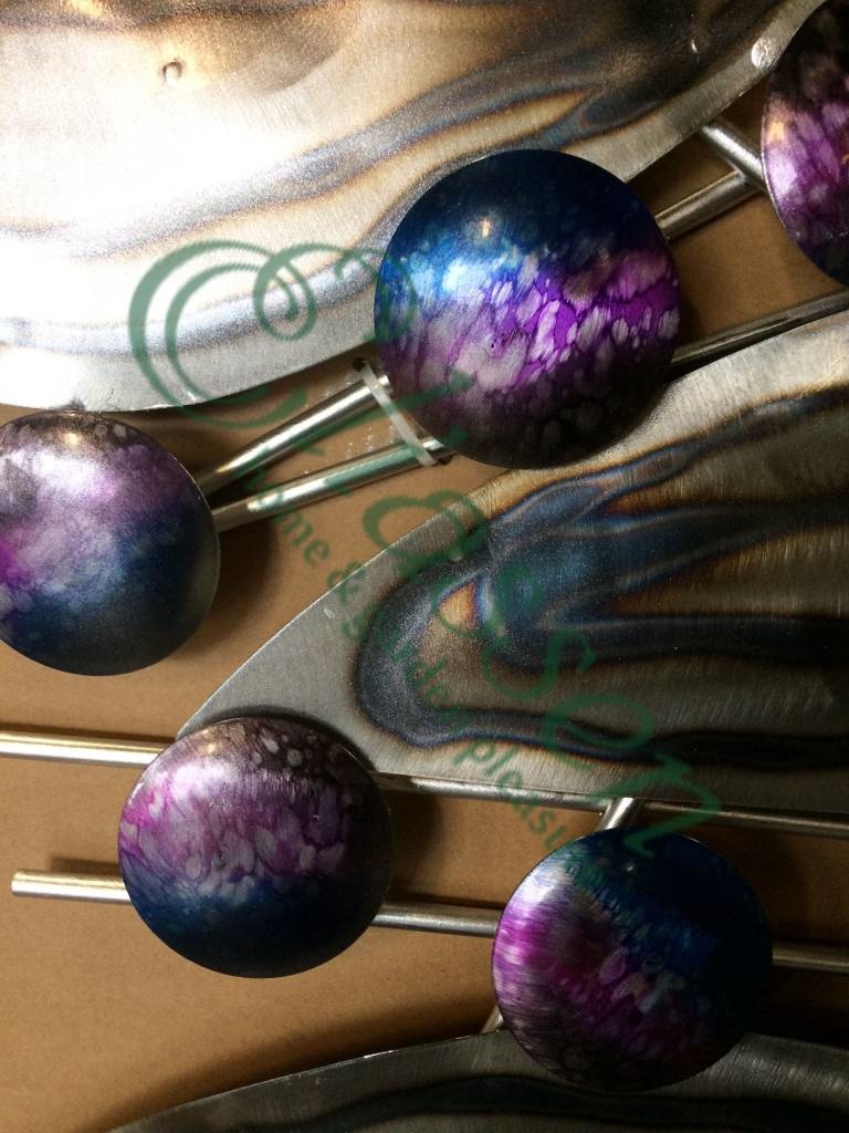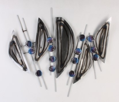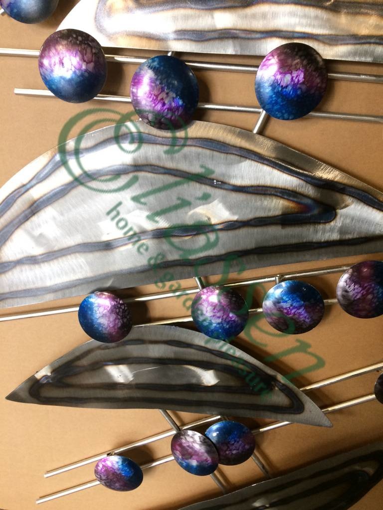 Dit 3-dimensionale metalen muurdecoratie kleedt elk modern interieur of werkplek prachtig aan. Dit model met blauwe rondjes zal een sfeervolle en tijdloze stuk wanddecoratie en een ware blikvanger zijn.