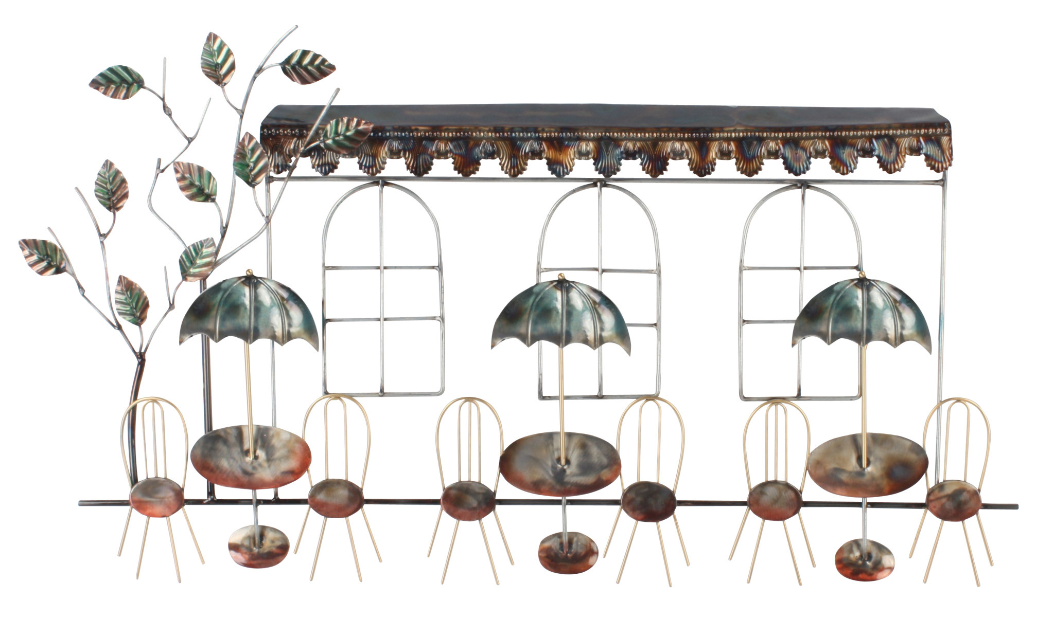 Dit 3-dimensionale metalen muurdecoratie met de uitvoering van een gezellig terras, kleedt elk modern interieur of werkplek prachtig aan. Dit sfeervolle en tijdloze stuk wanddecoratie zal een ware blikvanger zijn. Geheel handwerk met gepolijste delen waardoor het geheel een aparte lichtspeling teweeg brengt.
