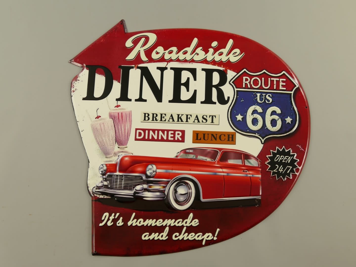 Dit stuk metalen muurdecoratie in retro stijl is een leuke sfeermaker.