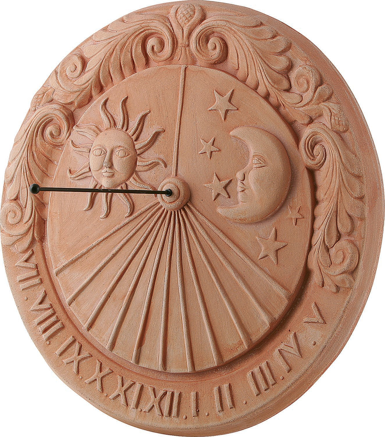 Muurzonnewijzer Terracotta Toscaans Zon en Maan 43cm