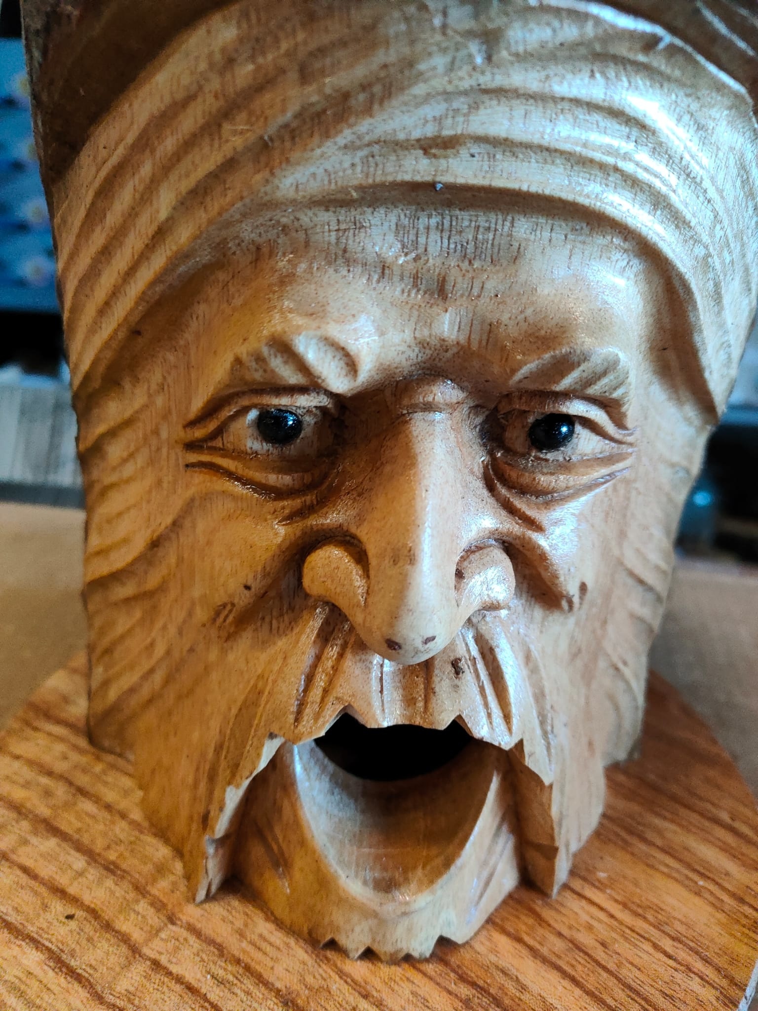 Houtsnijwerk boomstam met gezicht van boswezen 22cm