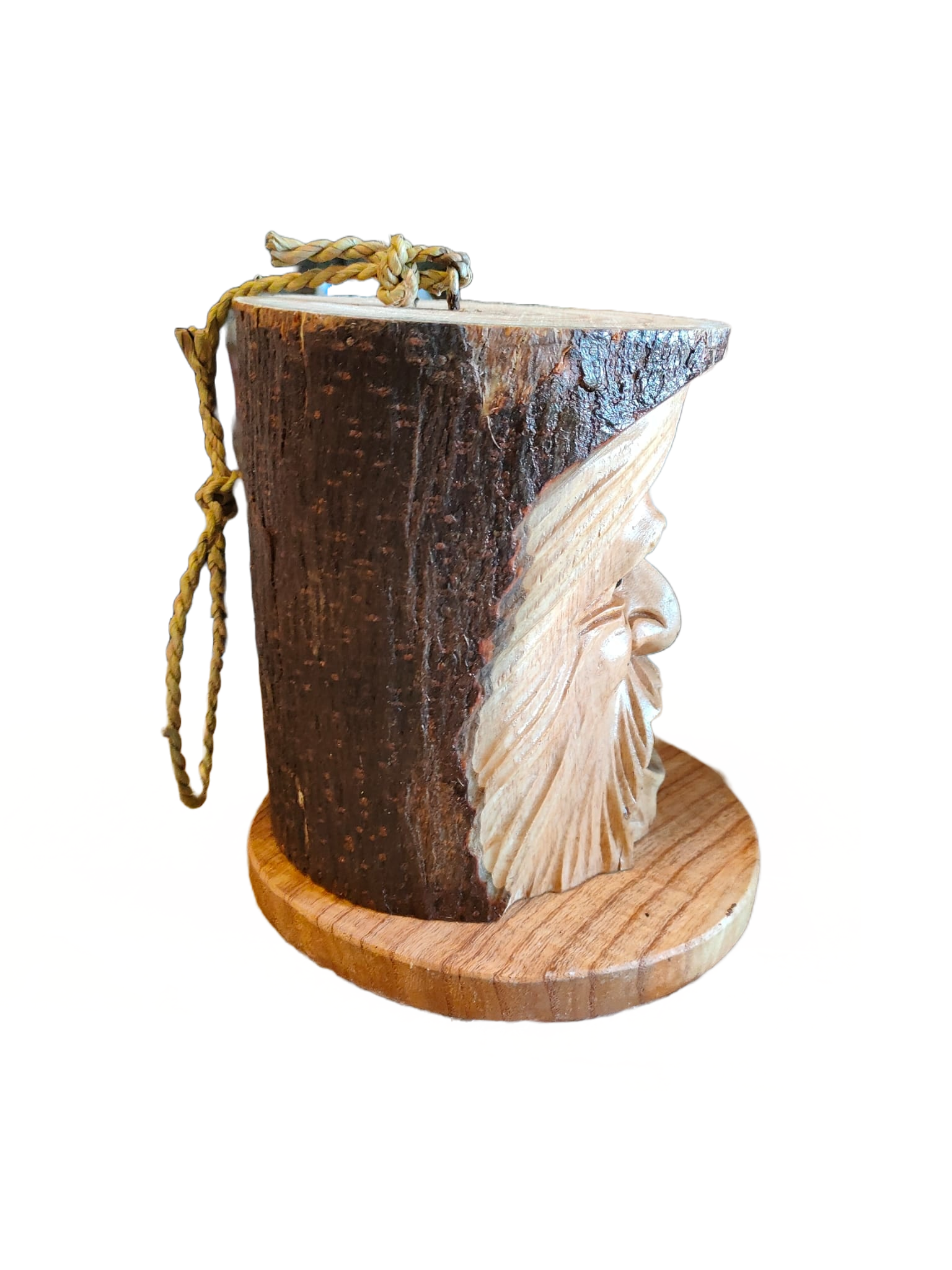 Deze nestkast is uit een stuk stam gemaakt, is handgesneden en is een boswezen prachtig in vormgegeven, gelet is voor het kleinste detail. Dit vogelhuisje zal in elke tuin een sfeervolle aanvulling zijn.