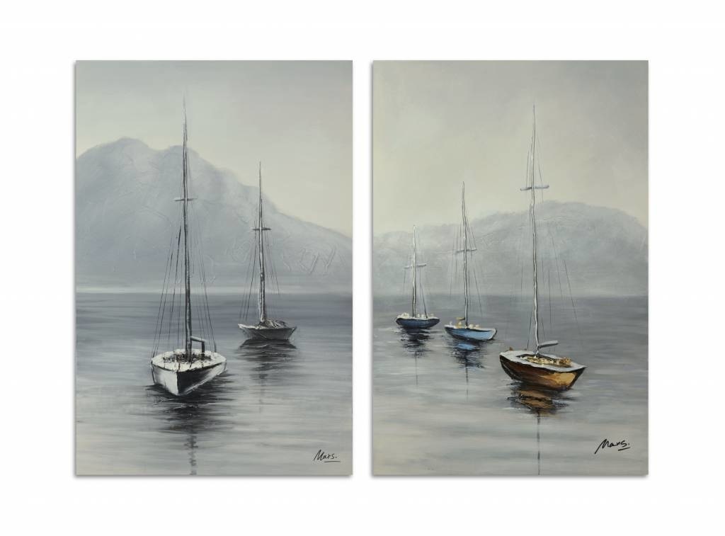 Wilt u een olieverf schilderij tweeluik op canvas, die op een ouderwetse manier en subliem geschilderd is door de beste vaklui ? Dan is deze serie wanddecoraties zeker iets voor u. Dit grote schilderij met de afbeelding met boten, is zorgvuldig gemaakt met de mooiste kleurcomposities, en met veel aandacht voor de finishing touch!