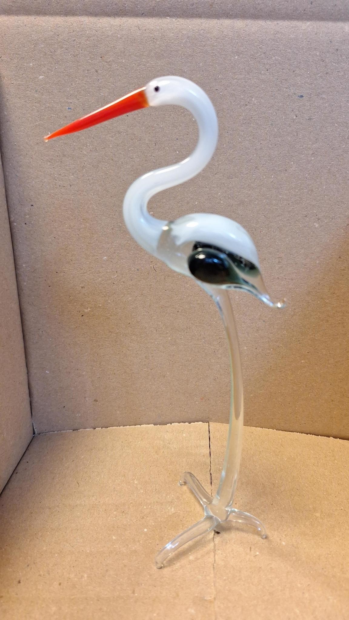 Deze glazen ooievaar van Europese makelij is met de grootste zorg en zeer gedetailleerd gemaakt.