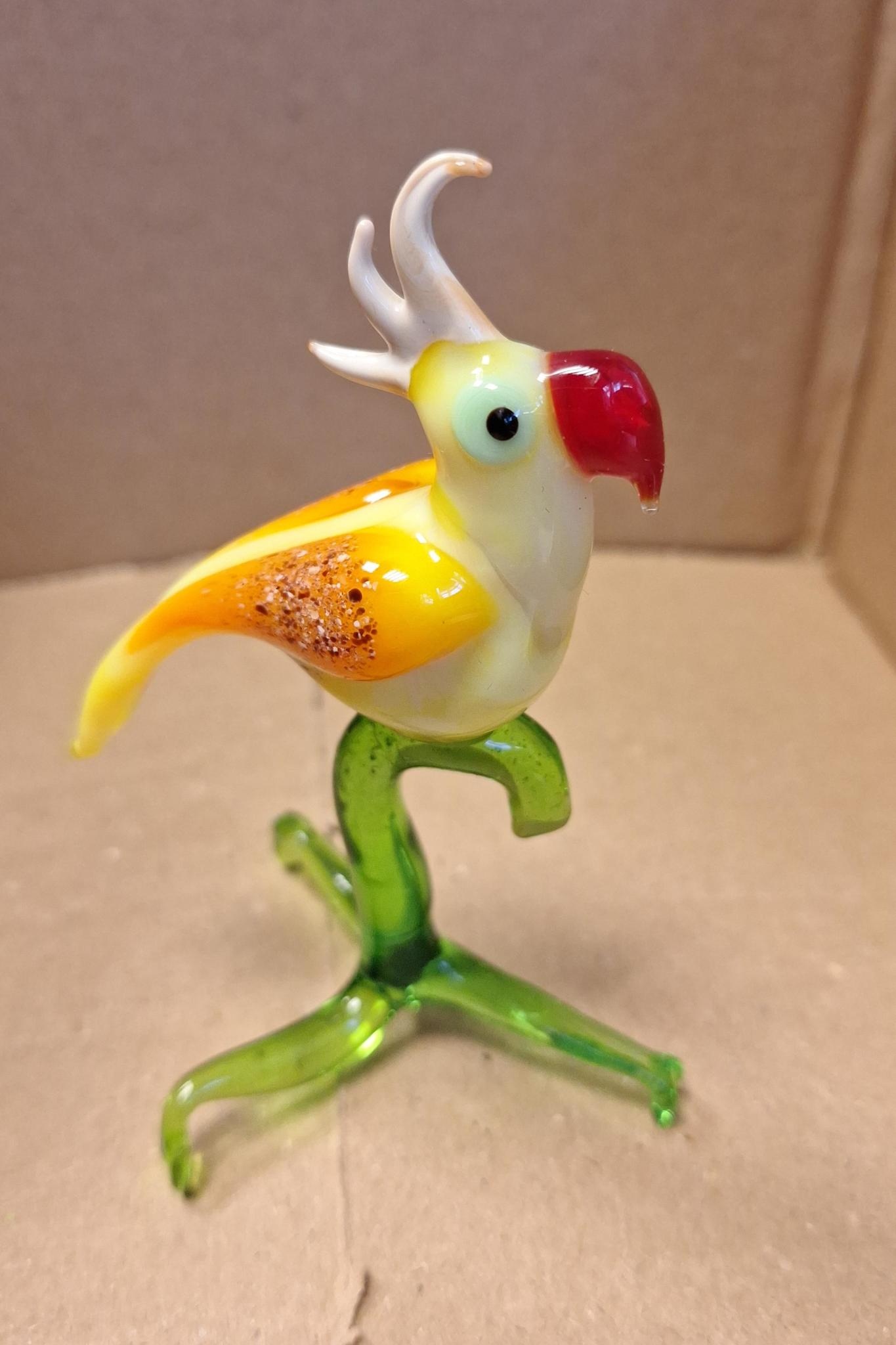 Dit glazen vogeltje van Europese makelij is met de grootste zorg en zeer gedetailleerd gemaakt.