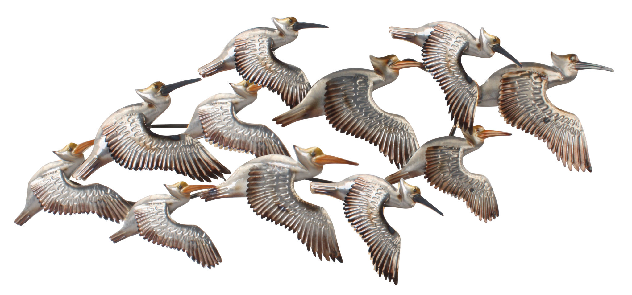 Dit 3-dimensionale metalen muurdecoratie met pelikanen, kleedt elk modern interieur of werkplek prachtig aan. Dit sfeervolle en tijdloze stuk wanddecoratie zal een ware blikvanger zijn. Geheel handwerk met gepolijste delen waardoor het geheel een aparte lichtspeling teweeg brengt.