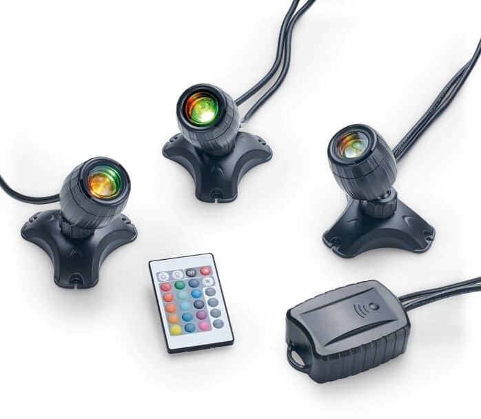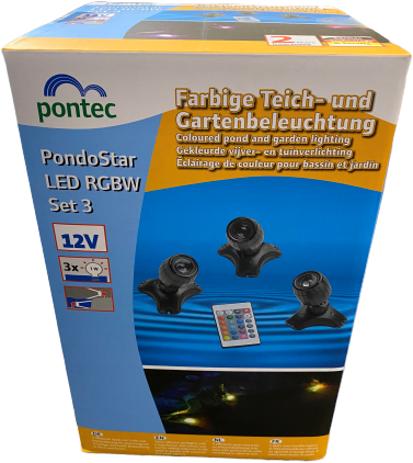 De Pontec PondoStar LED set-3 RGBW is een LED Set met 3 spots van 1 Watt elk. De vijverspots kunnen zowel boven als onder water worden opgesteld. Ze zijn 200º zwenkbaar, dus ideaal voor het belichten van waterornamenten om van dichtbij te belichten zodat het watereffect prachtig uitgelicht wordt, met name bij terrasfonteinen zodat deze spots op de onderbak geplaatst kunnen worden. Maar ook natuurlijk geschikt of andere objecten van dichtbij uit te lichten zoals tuinornamenten.