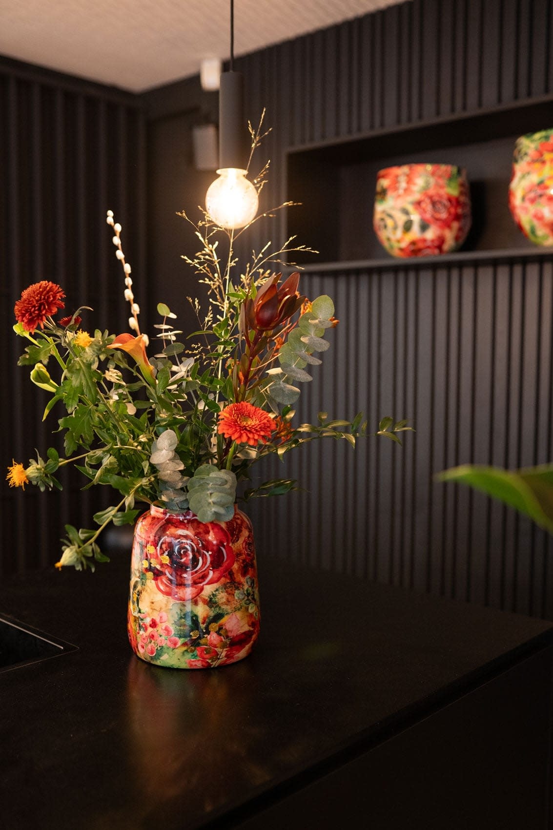 Deze pot uit de serie Rose Rouge van Lammie is een geweldig uitgesproken en kleurrijk stuk decoratie in uw huis, u zult er geen spijt van krijgen.