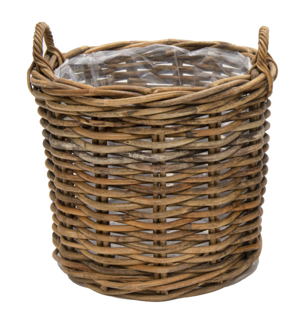 Deze grote cylindrisch gevormde rotan mand maakt deel uit van onze eigen collectie. Deze handgemaakte mand is gemaakt van stevig superdikke hele rotan, dus niet gespleten rotan en beschikt over een uniek en stijlvol gevlochten design. Deze ronde mand is voorzien van zeer solide handvaten en is voor talloze gebruik geschikt, bijvoorbeeld speelgoed,  kachelhout, planten enzovoorts.