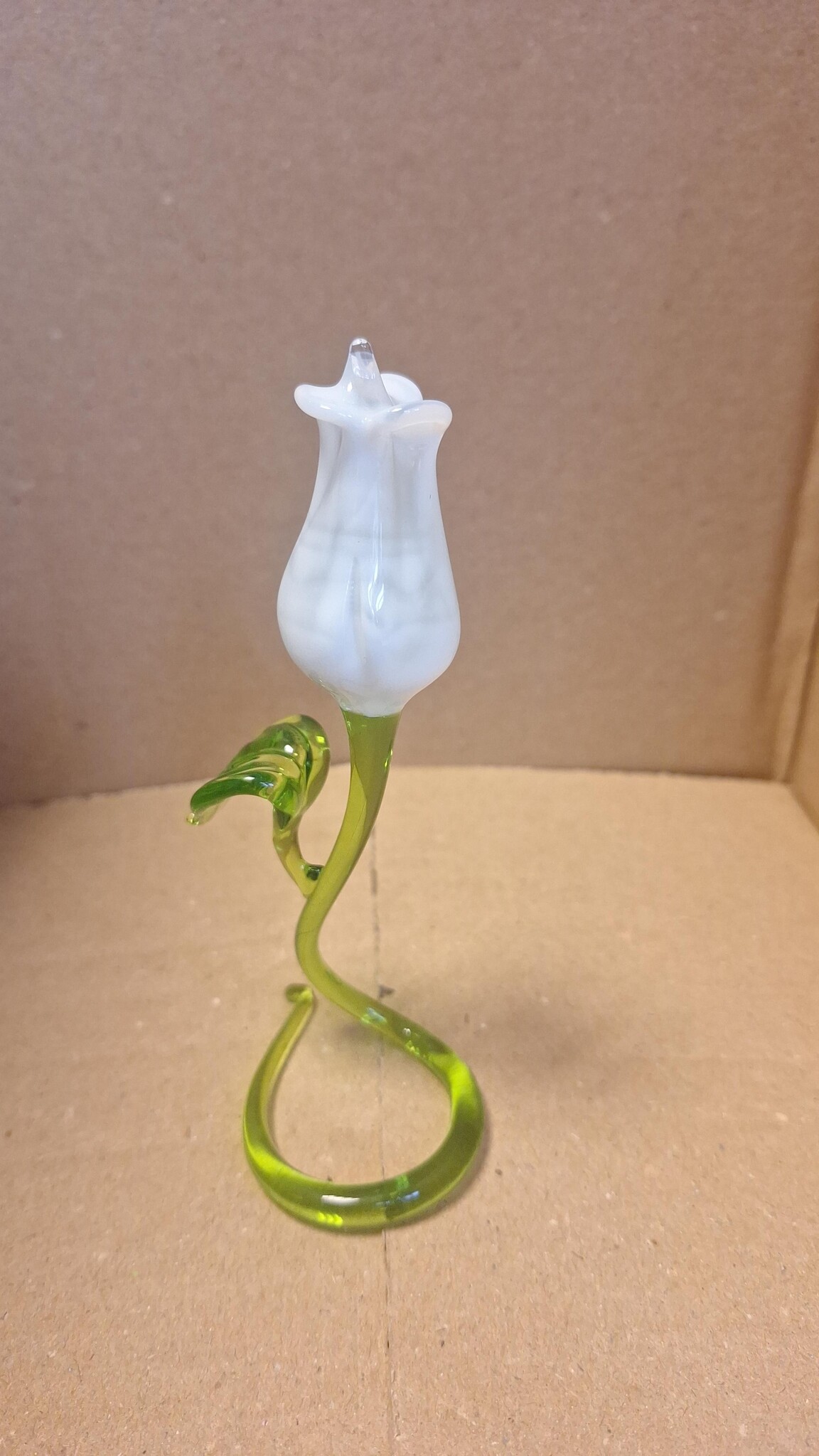 Bent u een liefhebber van glazen voorwerpen?, dan zult U deze wit gekleurde roos ook wel mooi vinden.