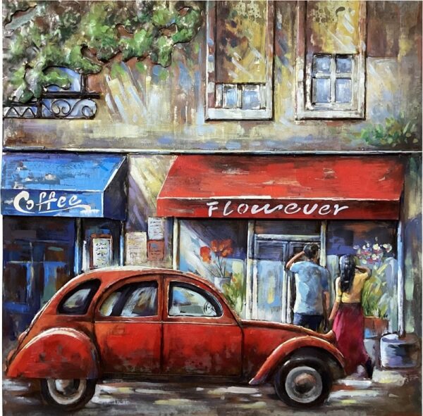 Geheel met de hand gemaakte 3d schilderij van metaal; een zeer arbeidsintensief stuk muurdecoratie !