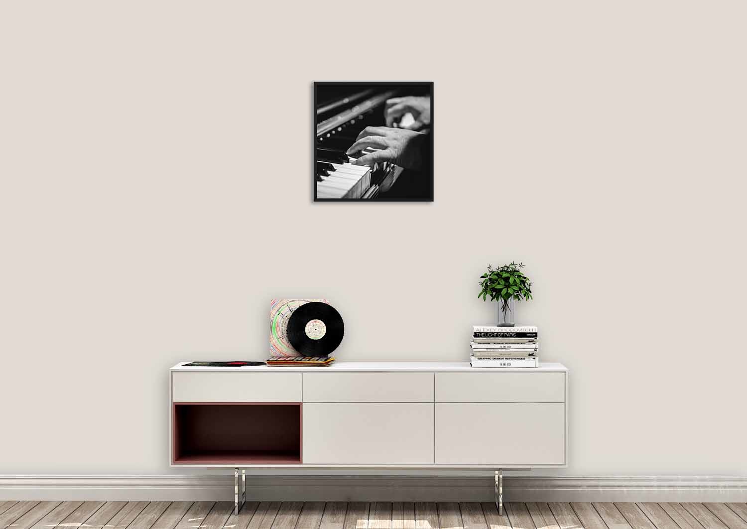 Dit Wandkraft fotoschilderij op Forex van 6mm dikte is zeker iets voor u wanneer u een lichtgewicht, semi-glanzende, maar wel een superscherpe fotoschilderij wenst. Dit schilderij met de afbeelding van een pianospeler is voorzien van een echt zwart houten lijst. Forex heeft een zijdeglans uitstraling, dit in tegenstelling tot glas was een hoge glans geeft.