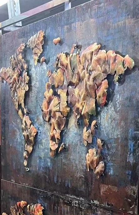 Metalen 3d schilderij met wereldkaart. Afmeting 120x80cm hoog.