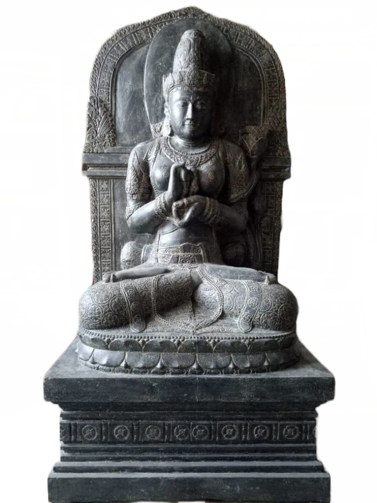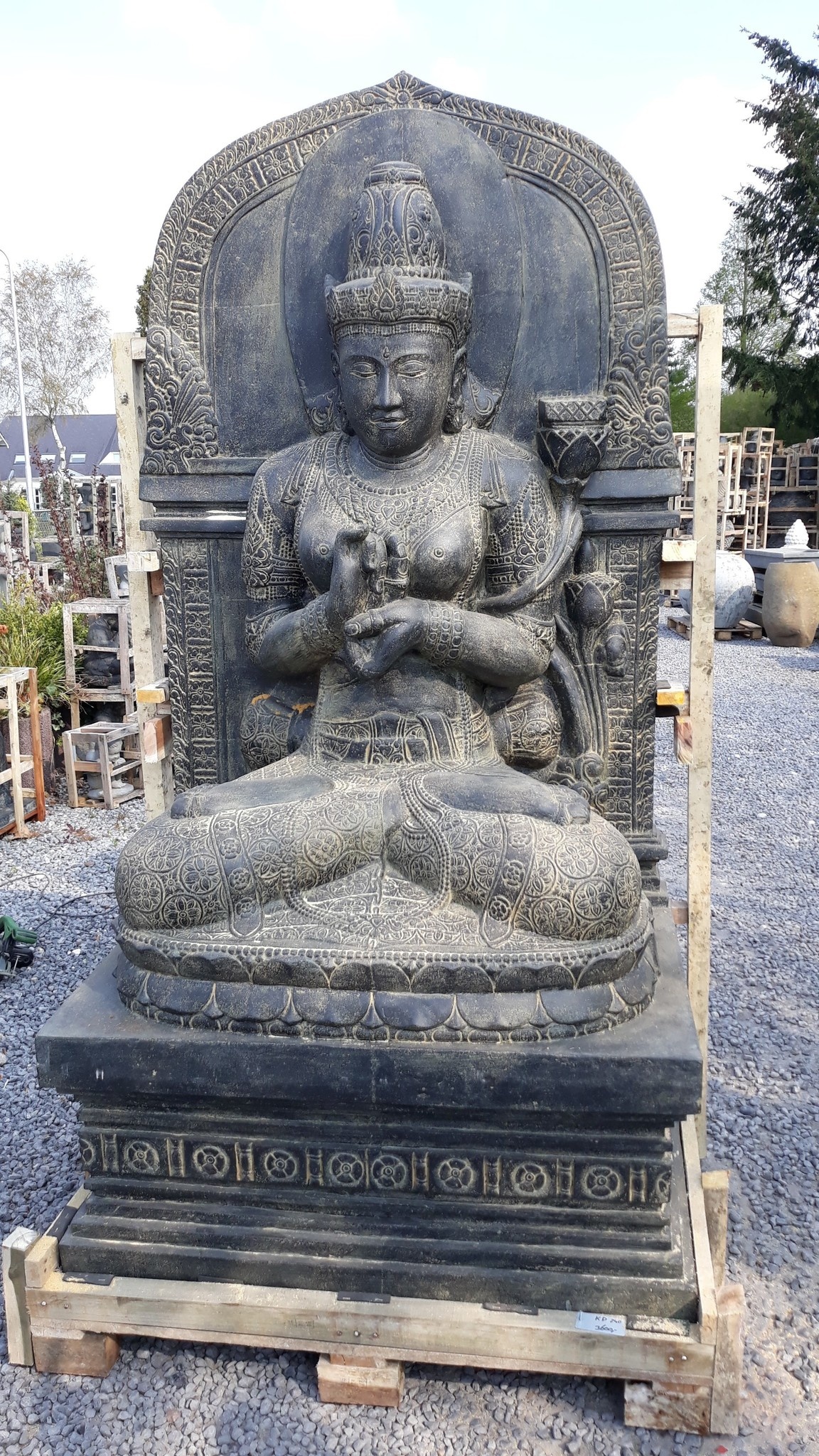 Prachtig voor binnen en buiten, deze grote Shiva blikvanger, 85cm diep, 123cm breed, van hoogwaardig gietsteen, zwart/bruin gepattineerd.