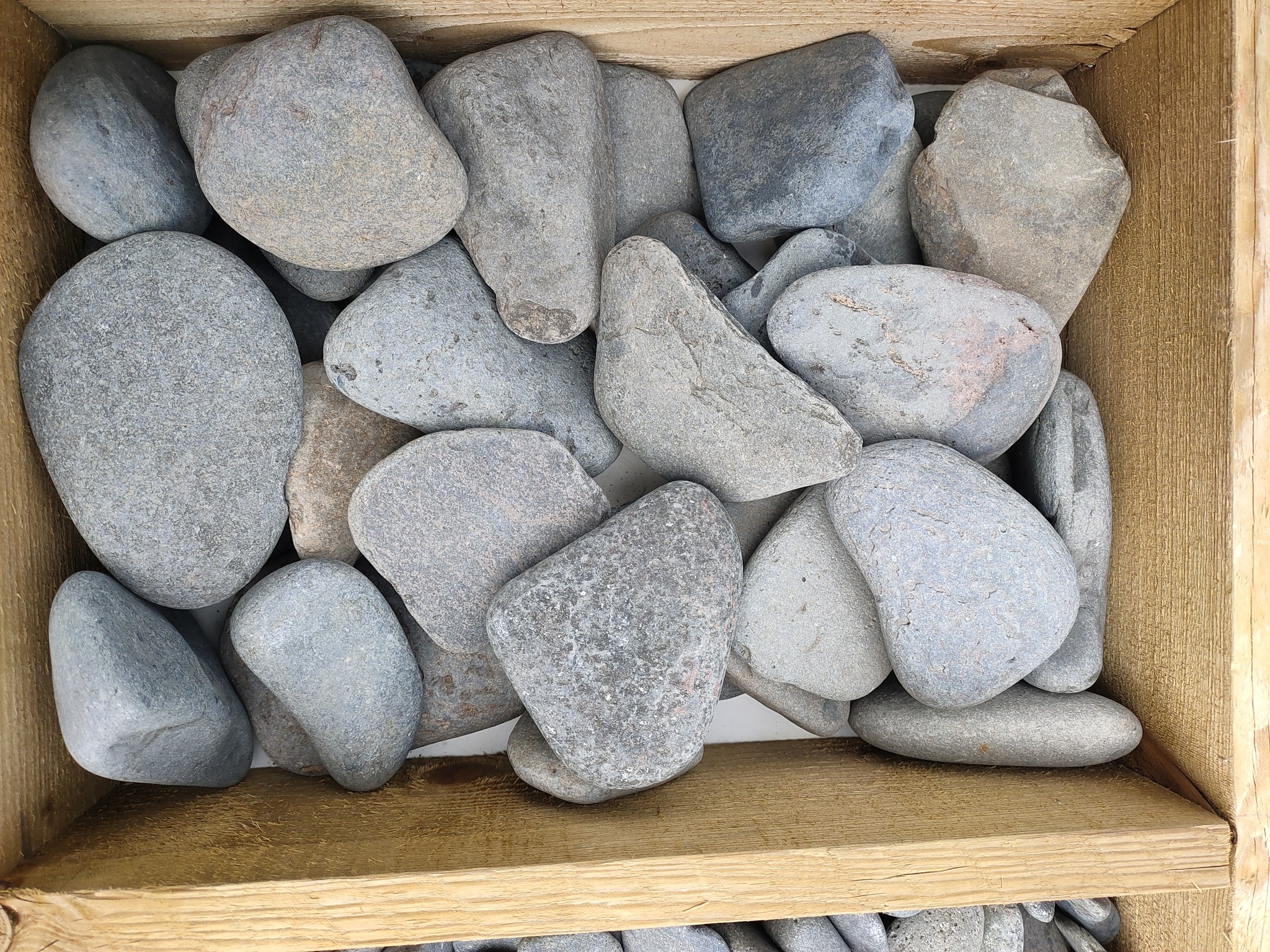 Keien koopt u bij de pebble specialist. Mooie grote zeer harde platte kwarts stenen in verschillende grijstinten die bijna niet groen worden. Kleurt mooi bij uw ornament, in de maten 30-50 en 50-80 mm.