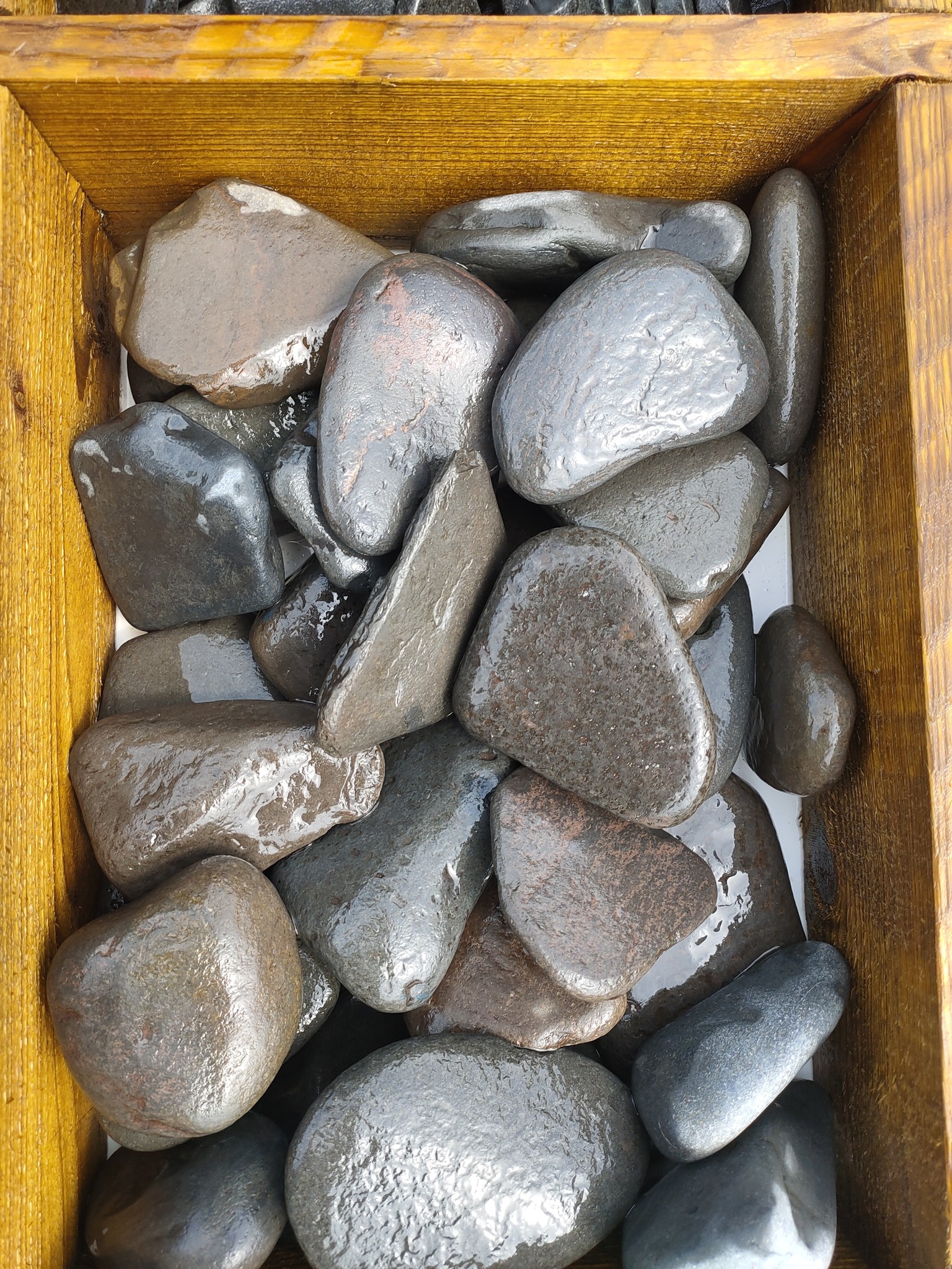 Per m2 is van deze grove soort pebbles ongeveer 4 zakken. Het blijkt dat veel mensen, scholen, hobbyclubs enz onze grote keien 5-8 cm bestellen, om ze te beschilderen als hobby, maar ook als gedenk steentje bij een graf, een begraven huisdier.