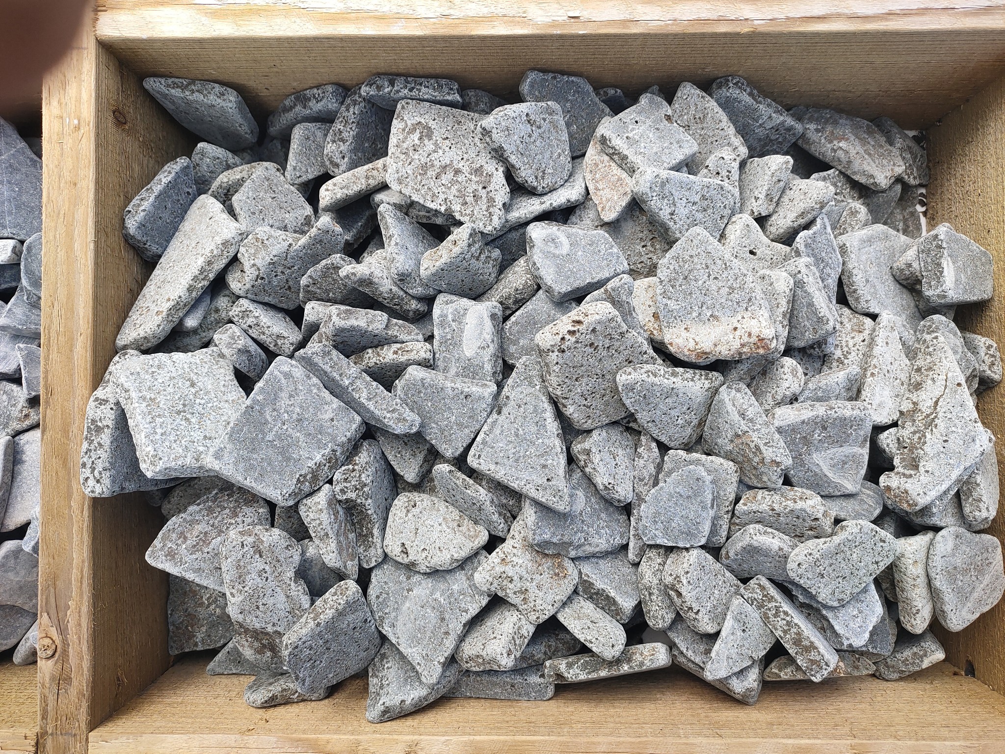 - Uitgesorteerde grillige schijfjes uit gewassen keien