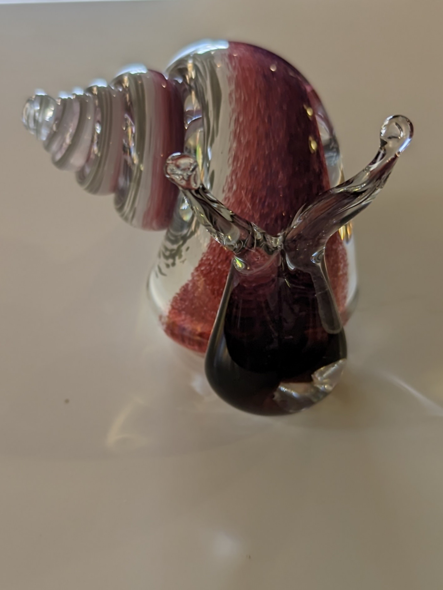 Dan kan dit handgemaakte glazen roze slak U wellicht interesseren.