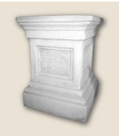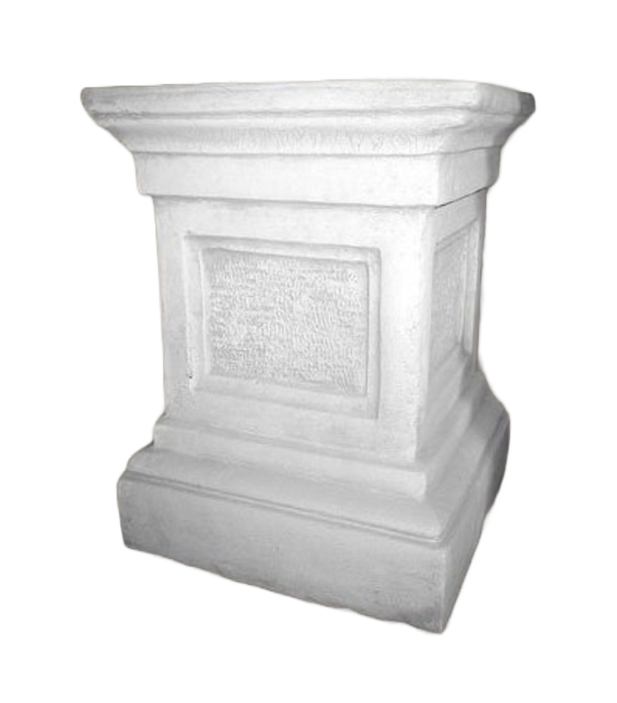 Een supergrote sokkel met vierkanten aan 4 kanten. Gemaakt van wit beton wat lichtgrijs ingewassen is. De sokkel is 60cm hoog en weegt 130 kg.