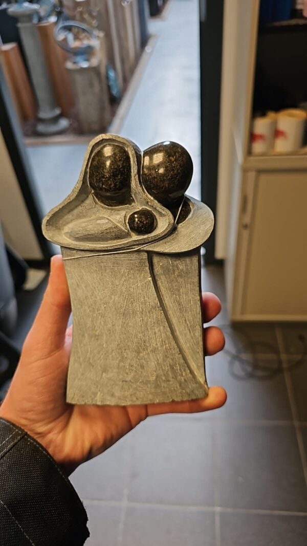 Speksteen beeld ouders en kind 17cm
