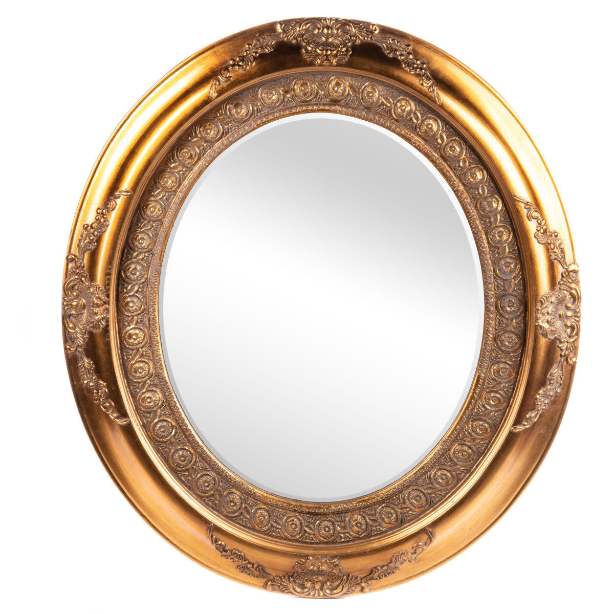 De spiegel is van hoogwaardige kwaliteit bestaande uit glas en hout. De kleur van de omlijsting is goud en de spiegel heeft een dikke matte omlijsting.