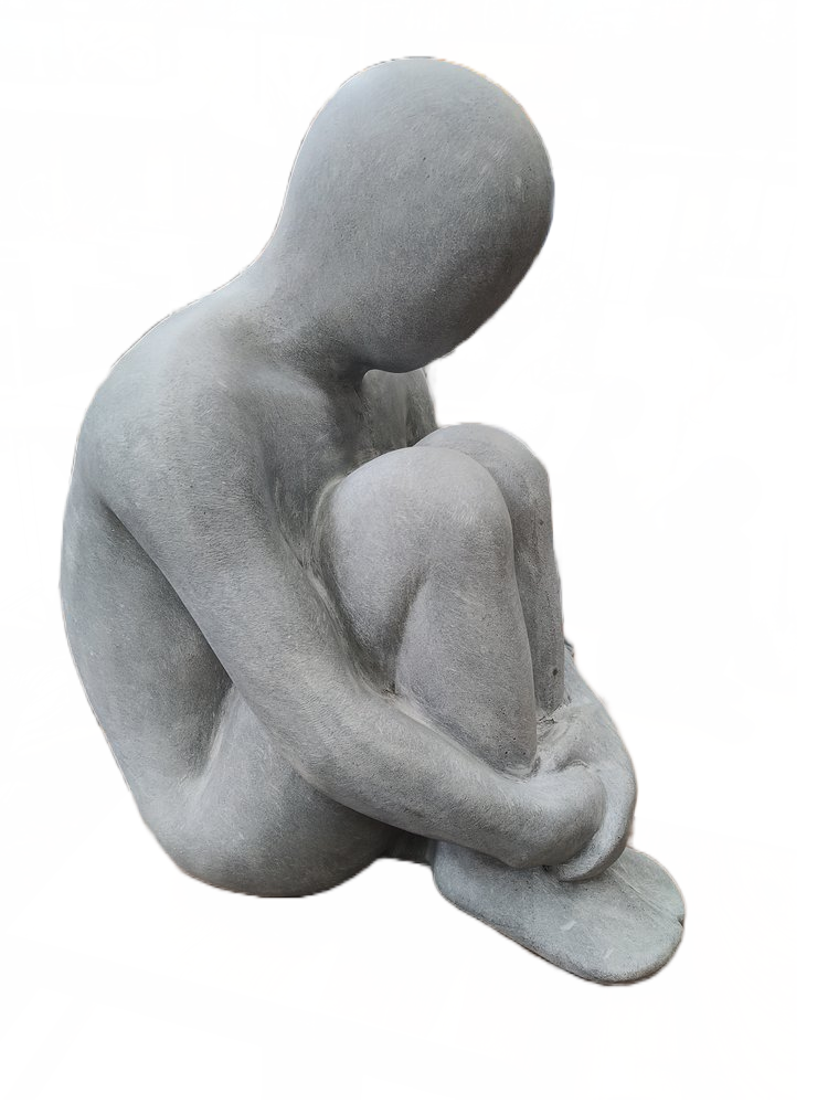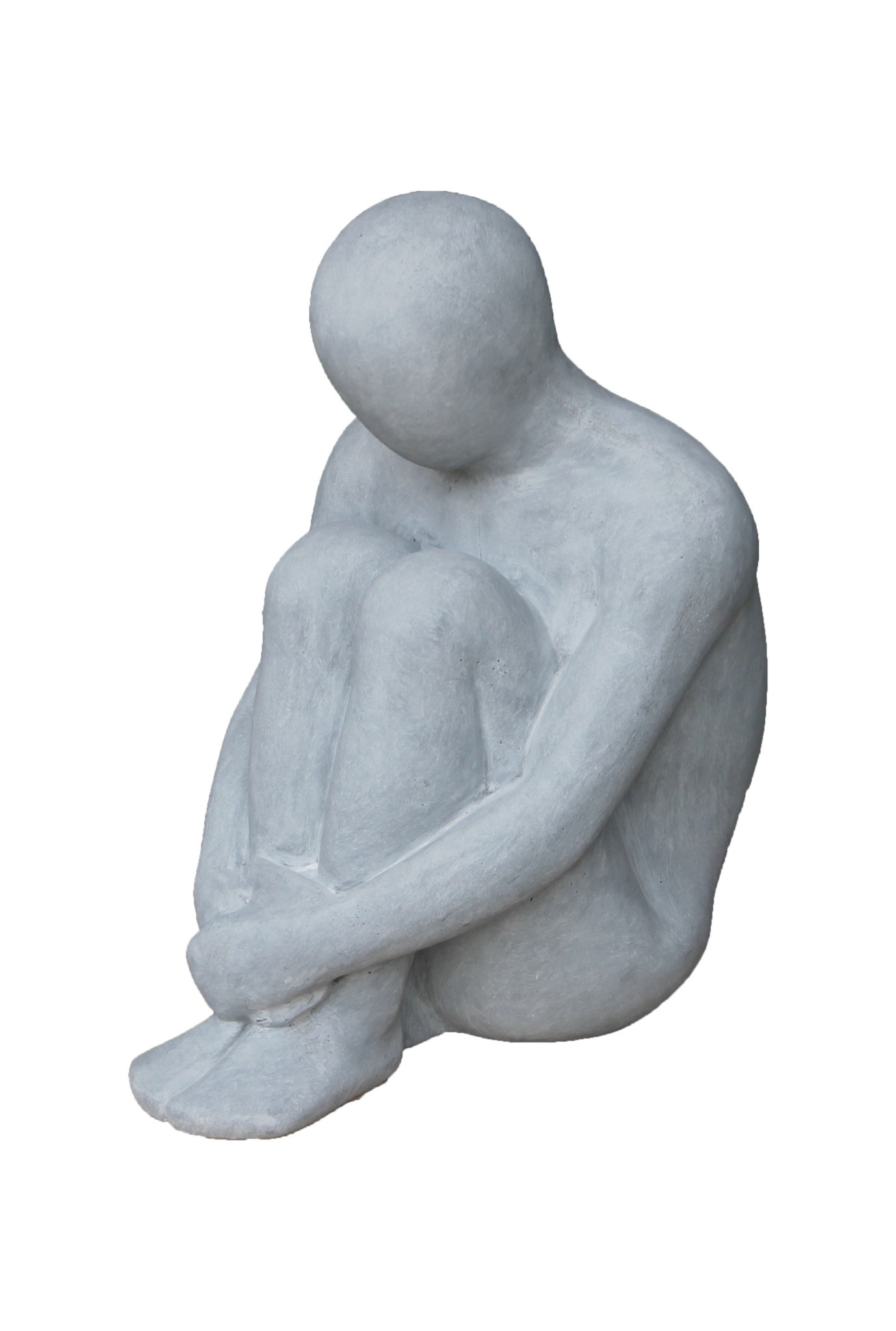Stenen beeld ontspannen en zittende man grijs 73cm