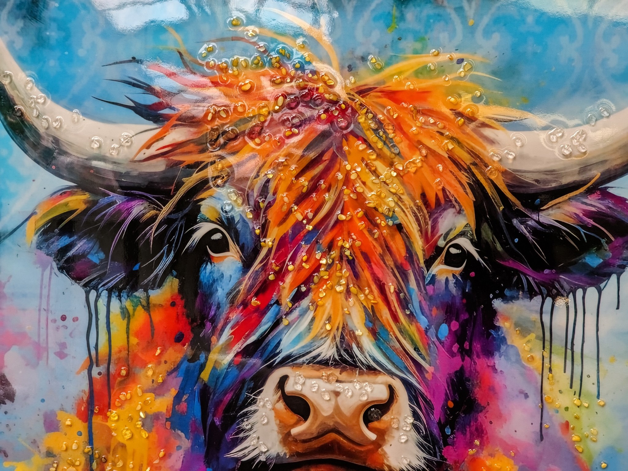 Strass schilderij Stier bonte kleuren 63x62cm hoogglans