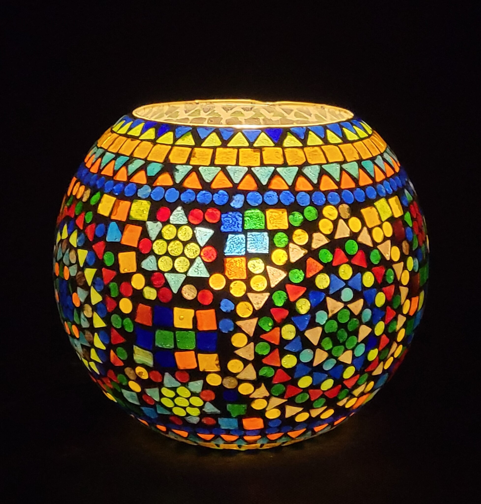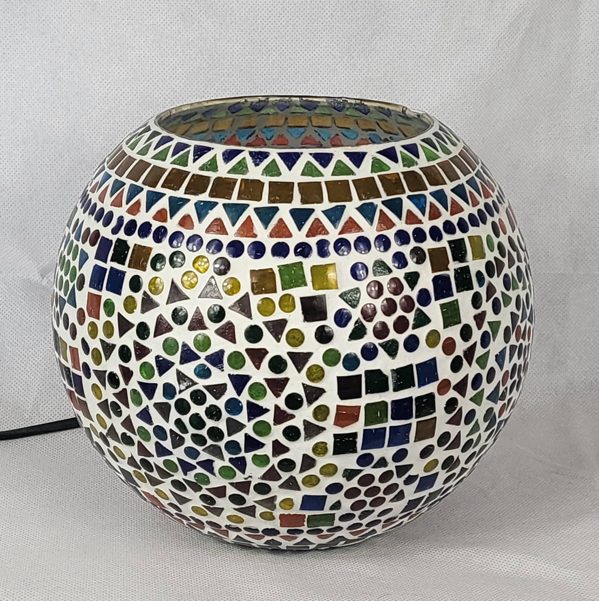 Tafellamp glas mozaïek bont bol 21x21x19cm.
