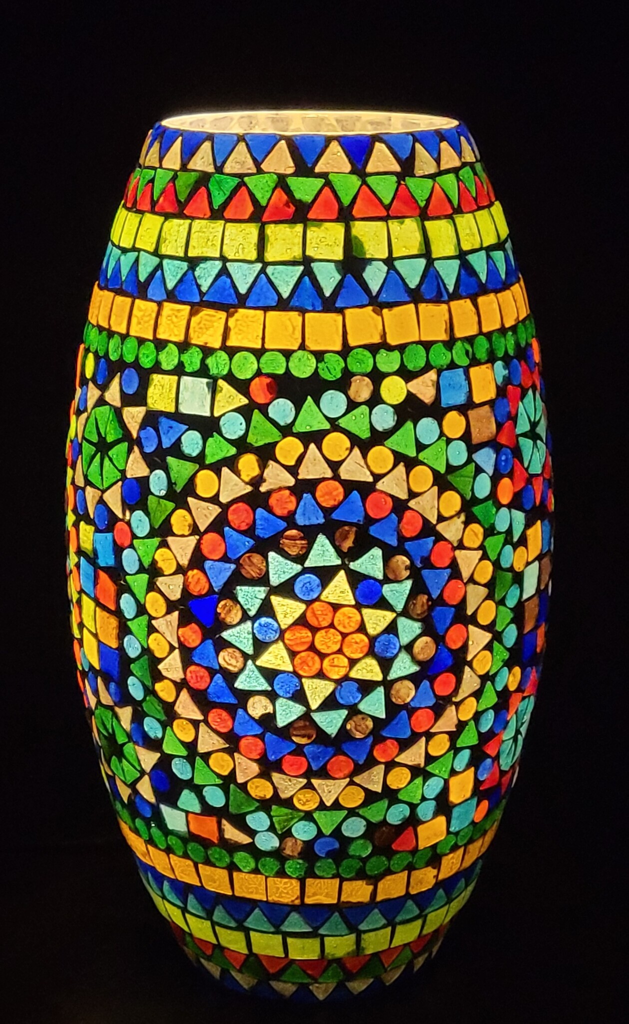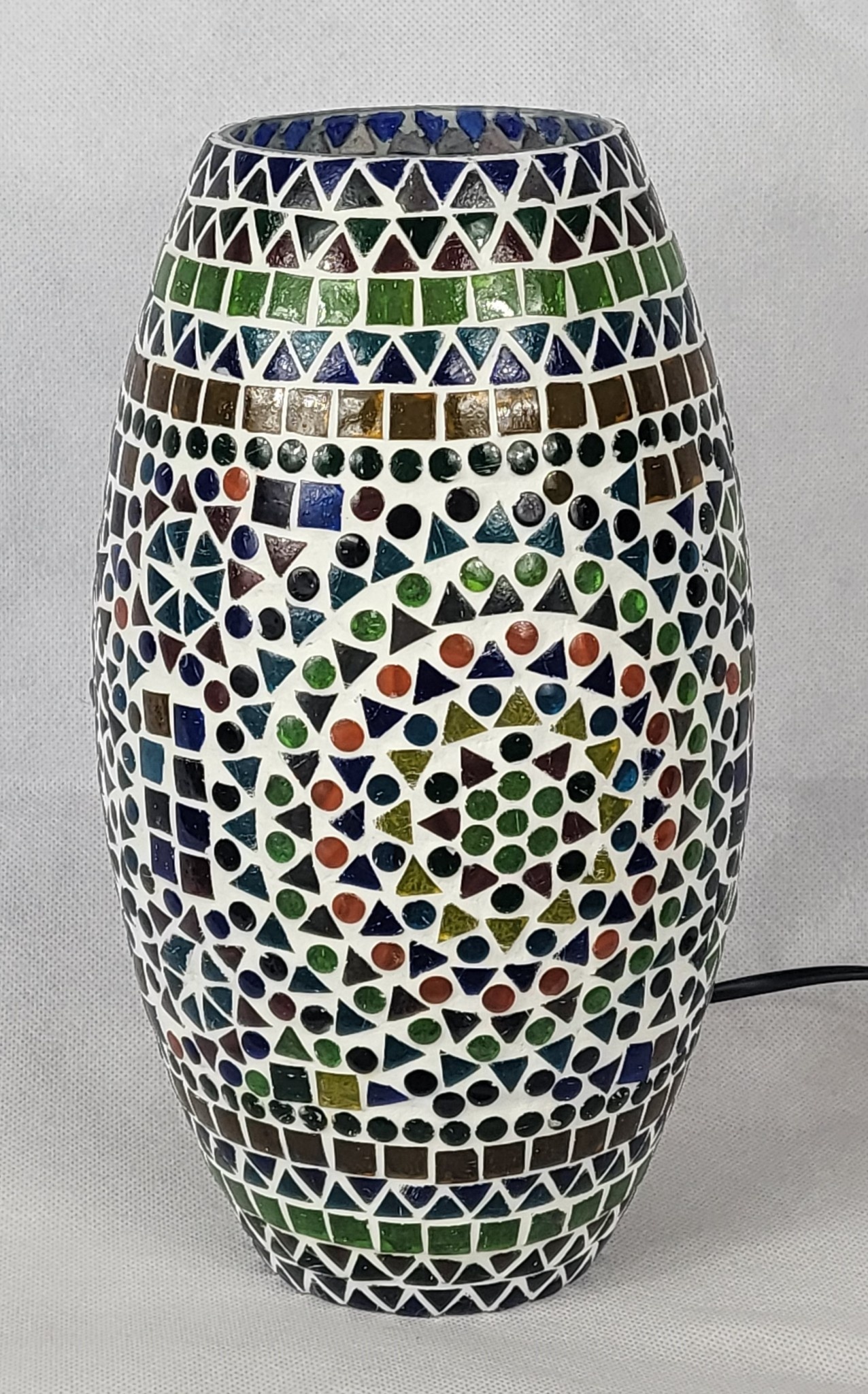 Mozaïek lamp hoog model in vele bonte kleuren.