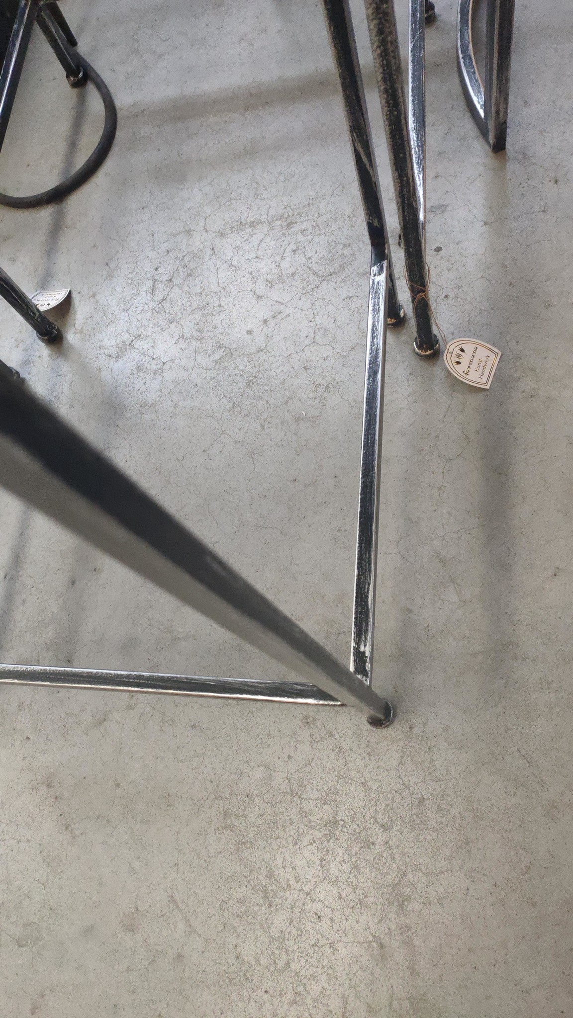Gemaakt van stalen kokers 12mm. zwart gecoat, met een zilveren finish op het ijzerwerk. Aan de bovenzijde is een 14mm dikke mdf plaat aangebracht, met een landelijk ogende blok vorm.
