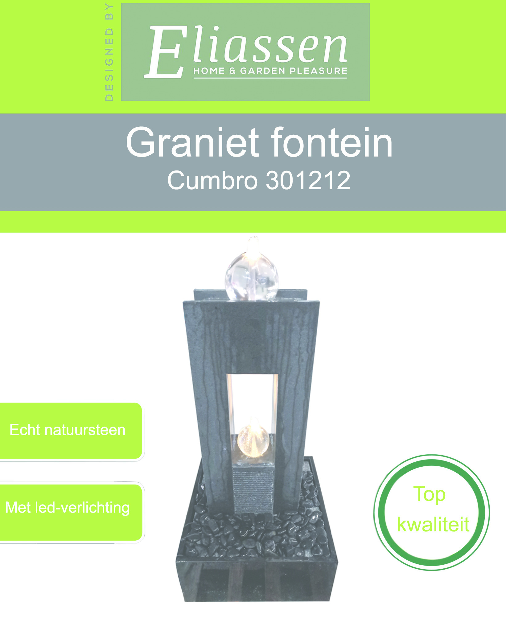 Bent u op zoek naar een fontein voor in uw tuin? Deze terrasfontein van graniet genaamd Crumbo biedt u de mooie uitstraling in een compleet pakket. Waterornamenten zijn er in verschillende vormen en maten, dit model is een terrasfontein dus dat betekent dat u niet in uw tuin hoeft te graven.