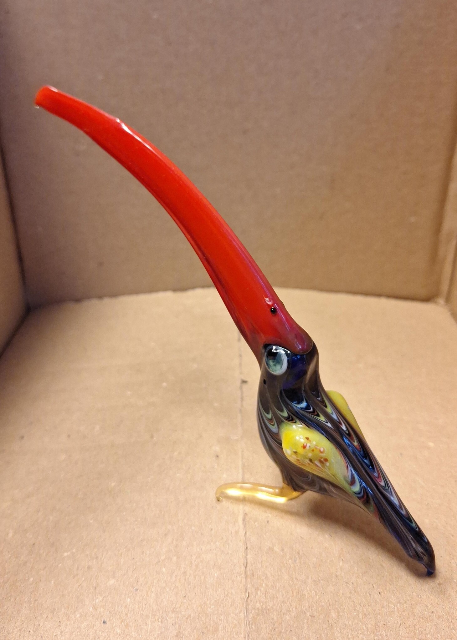 Deze glazen toekan van Europese makelij is met de grootste zorg en zeer gedetailleerd gemaakt.