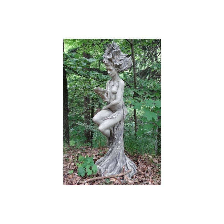 Een prachtig vormgegeven model tuinbeeld in de vorm van een Bosnimf. Gemaakt van het allerbeste gietsteen.